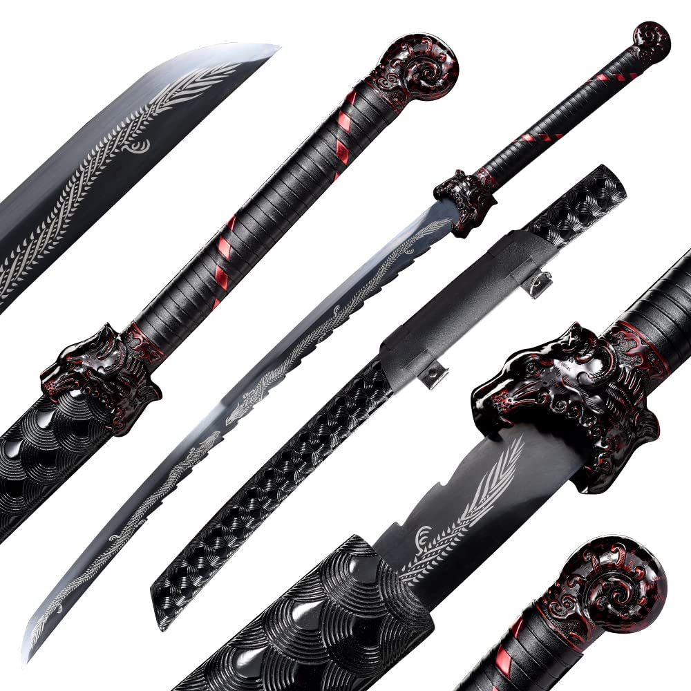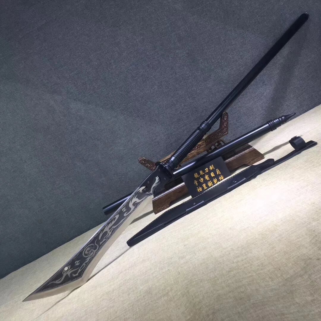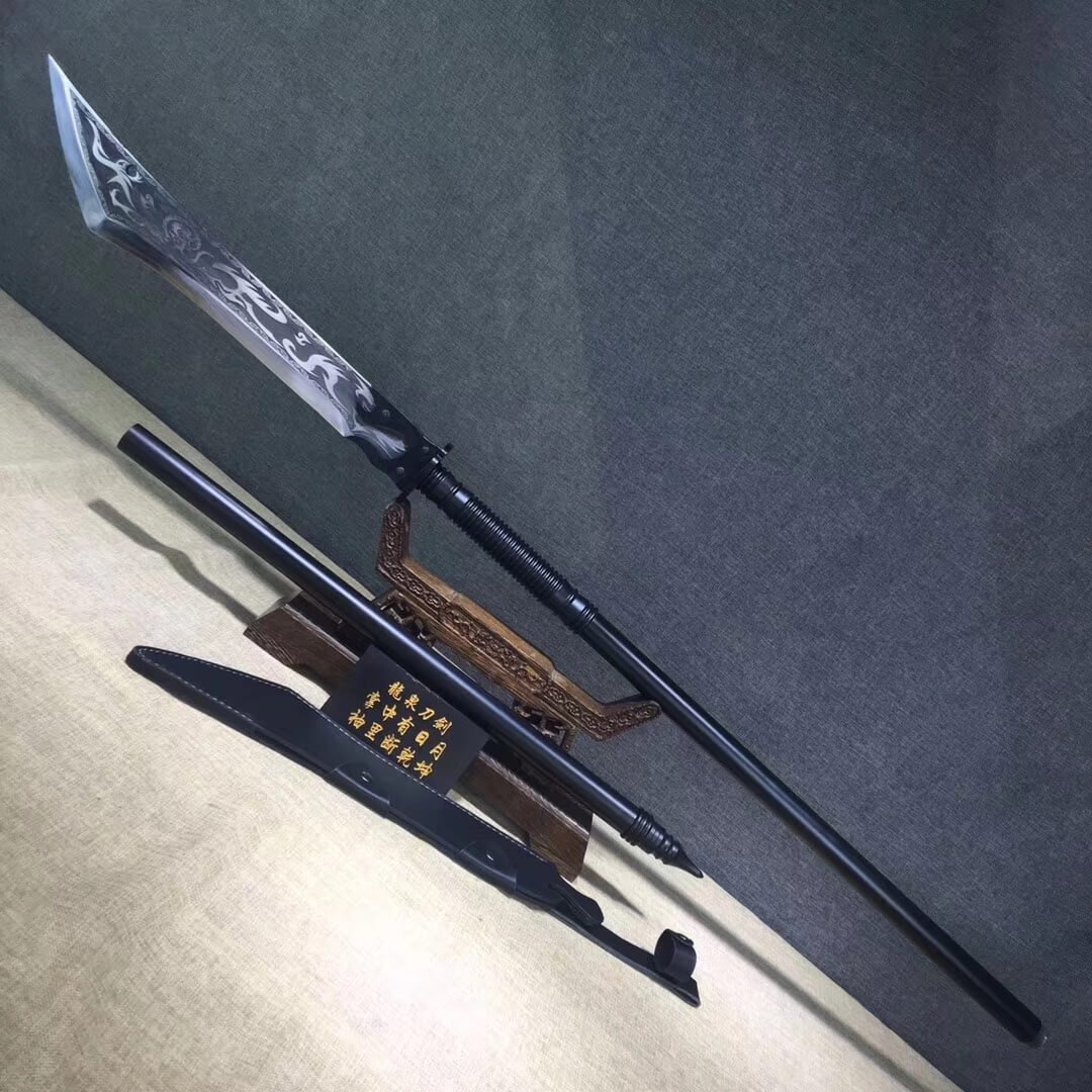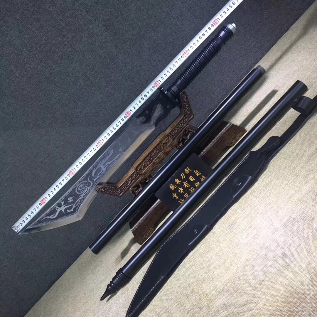 Item Specification: Blade Material:High carbon steel,Surface etched pattern; Sword Type:Handmade; Package weight:4.6kg; Length:Full 78"/200cm,With head length 19"/50cm; Rod:Stainless steel; Scabbard:Black leather; Condition:Brand New; Origin:Longquan Zhejiang China; Accessories:Cotton sword bag.No sword stand. Note: 1.Each sword, a result of meticulous handcrafting, may display slight variations in length, weight, and color, a testament to its uniqueness. 2.As manufacturers, minor discrepancies may arise due to assembly variations. 3.Should you require specific blade sharpness, we encourage you to reach out to us for clarification before making your purchase. LOONGSWORD Brand Story: At LOONGSWORD, we are dedicated to the art of sword making, blending traditional craftsmanship with modern expertise. Every sword is meticulously crafted by master artisans, carrying forward the legacy of Longquan's renowned sword forging skills, recognized as China's intangible cultural heritage. Inspired by the mythical dragon, symbolizing power and strength in Chinese culture, LOONGSWORD embodies the pursuit of excellence and the essence of ancient traditions. Embrace the spirit of the dragon and wield a LOONGSWORD with pride, holding a piece of history and craftsmanship in your hands. Embark on a legendary journey with the artistry of LOONGSWORD.