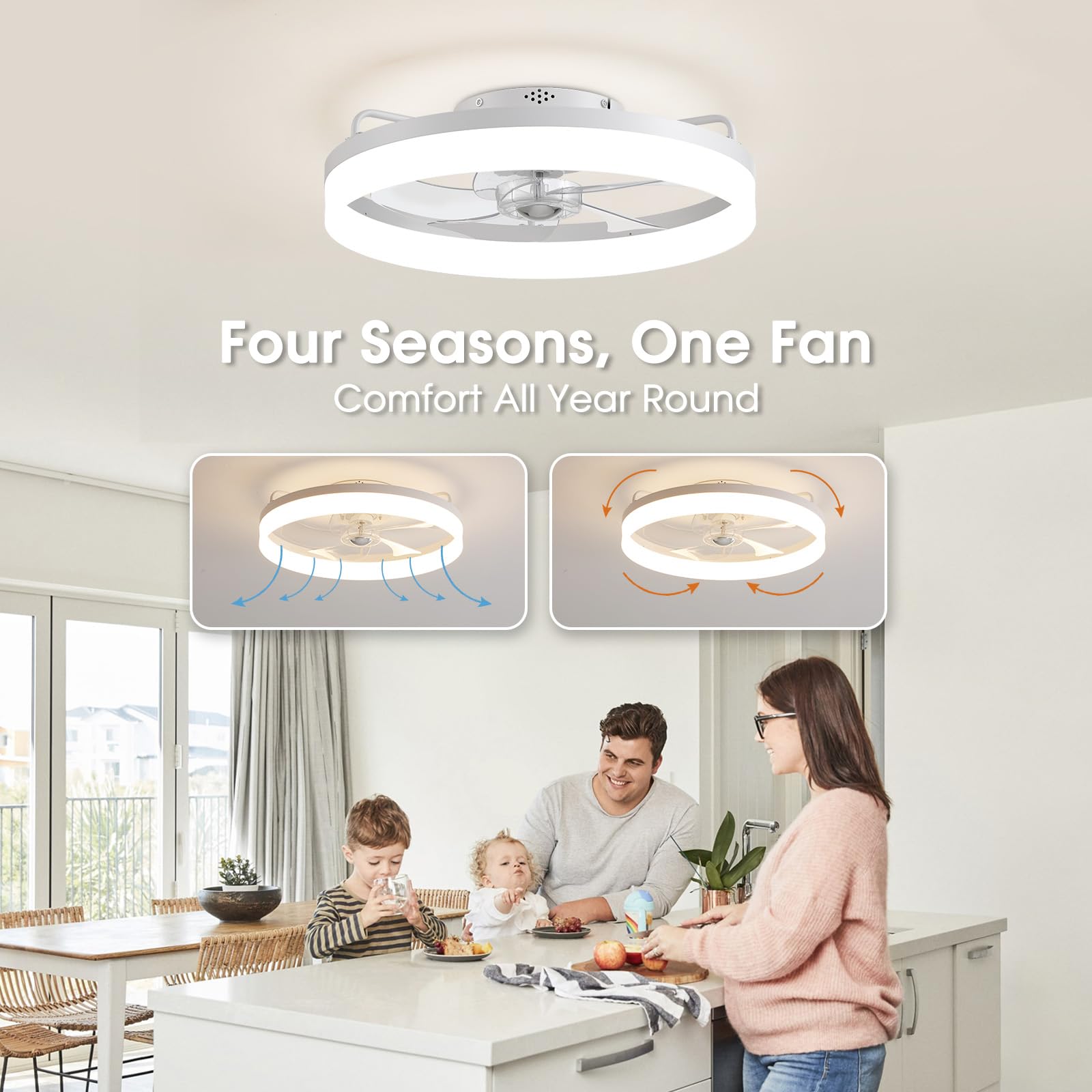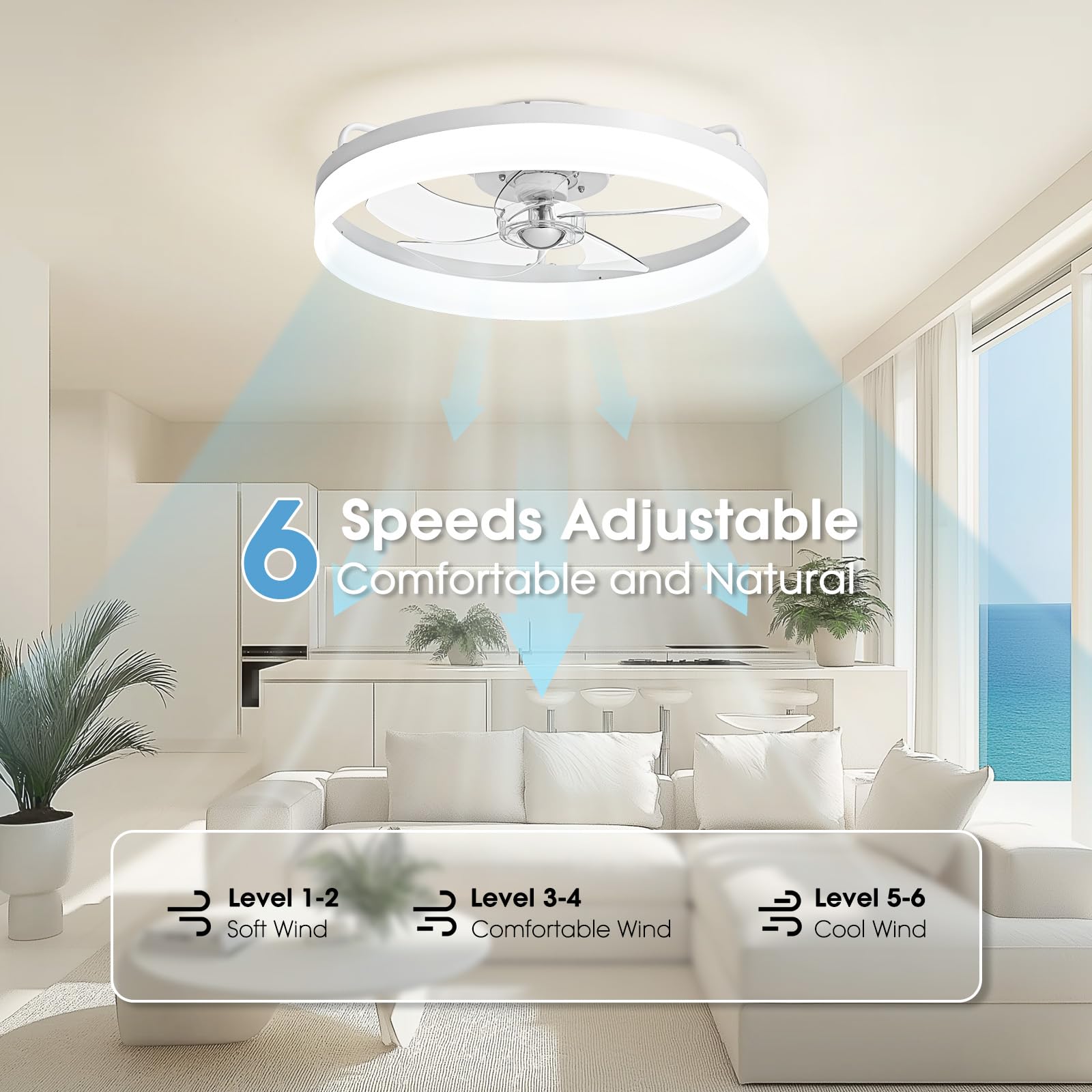 【Modern Ceiling Fans 2 in 1 Design】: 6 Wind Speeds + Timing Function + Reversible Wind + Memory Function + Dimmable LED Light. Modern low profile ceiling fan is designed with an LED light that adds to its sleek appearance, making it a great home decor item.