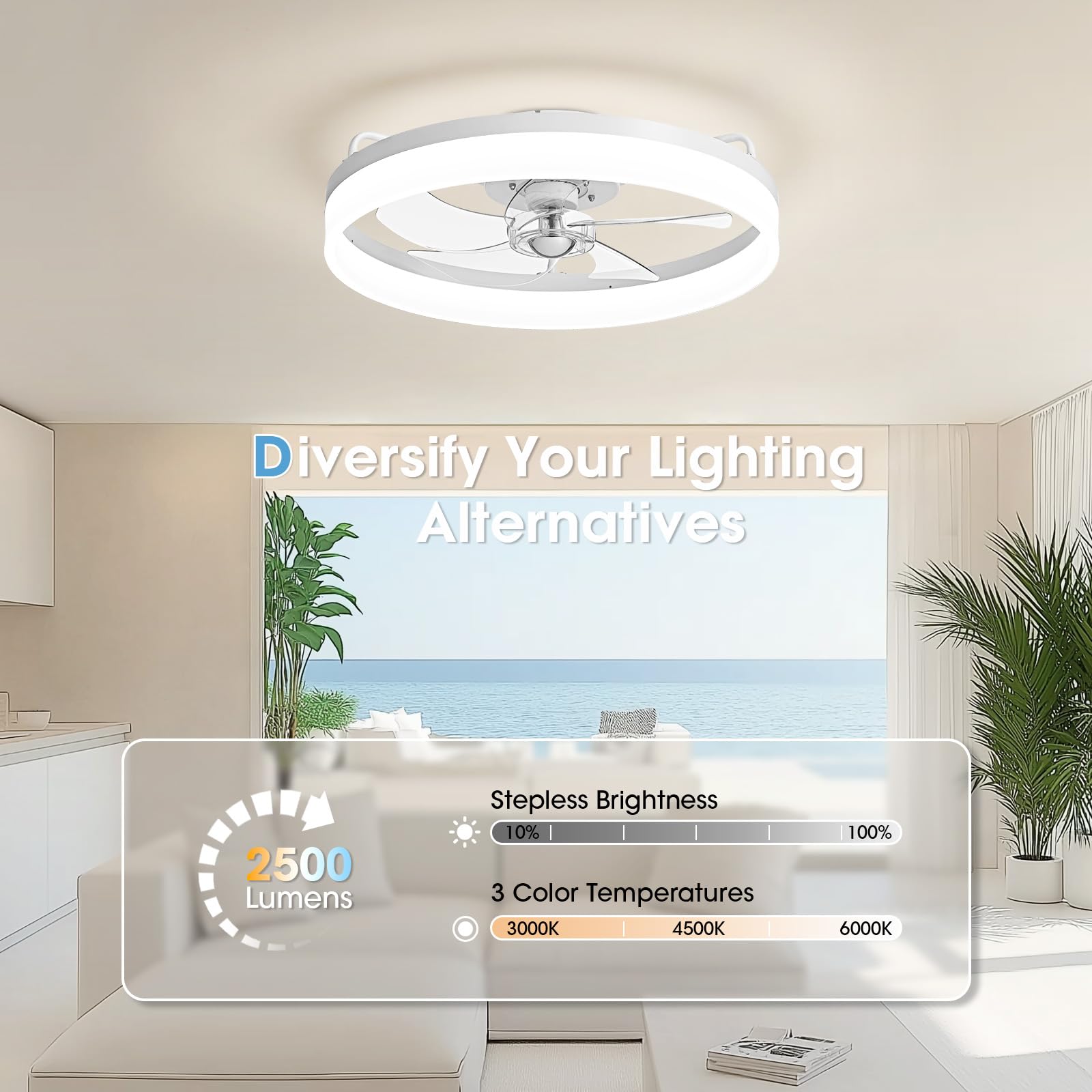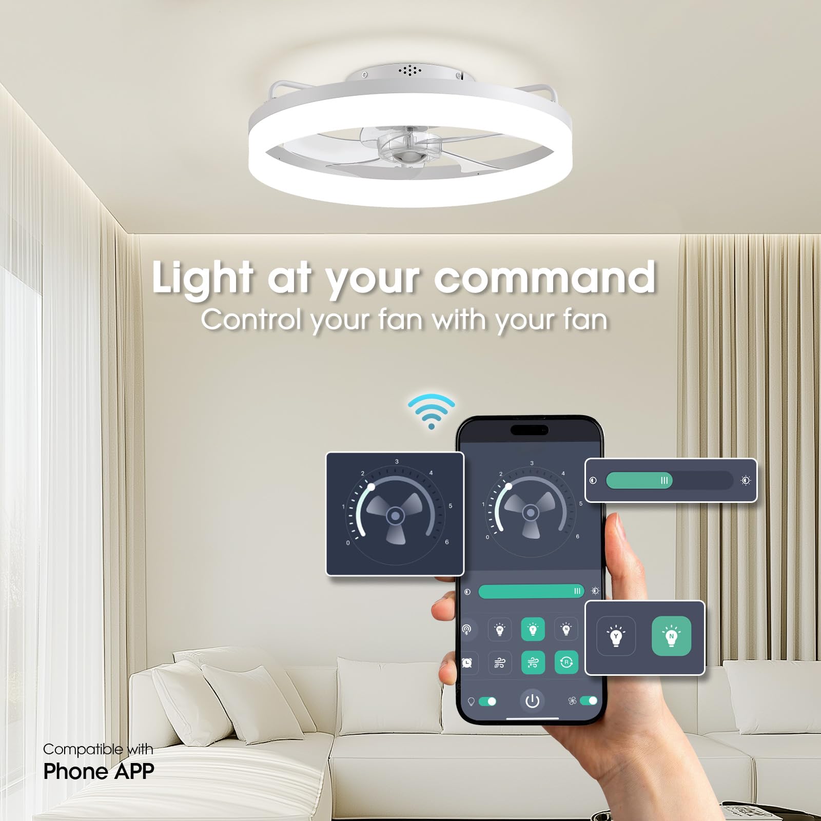 【Dimmable 34W LED Light】: This semi flush mount ceiling fan light has three color lighting modes that can be controlled by a remote / APP, ranging from warm (3000K) to white light (6000K). It is also dimmable, with a range of 10% to 100% brightness, allowing you to adjust the light from dark to bright.