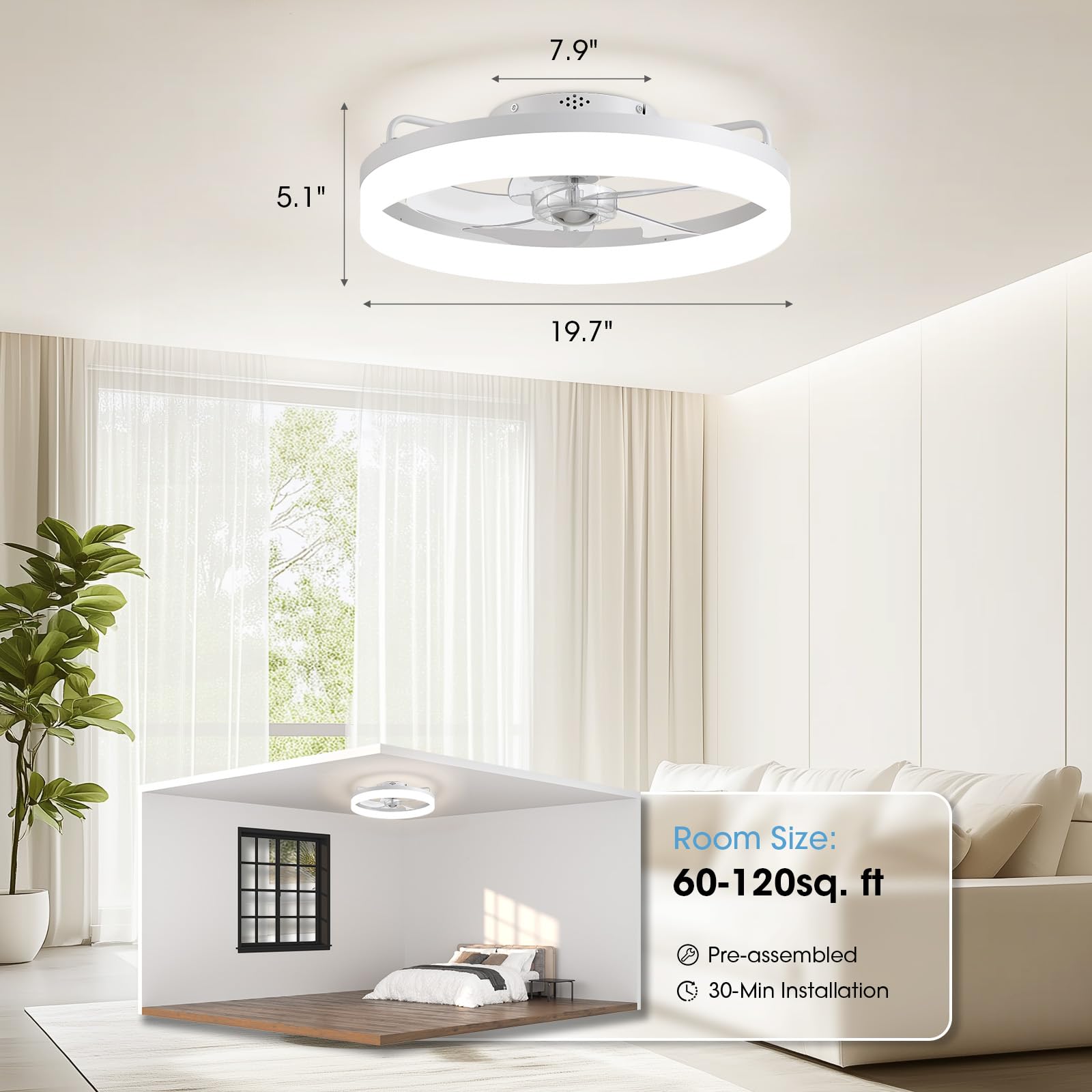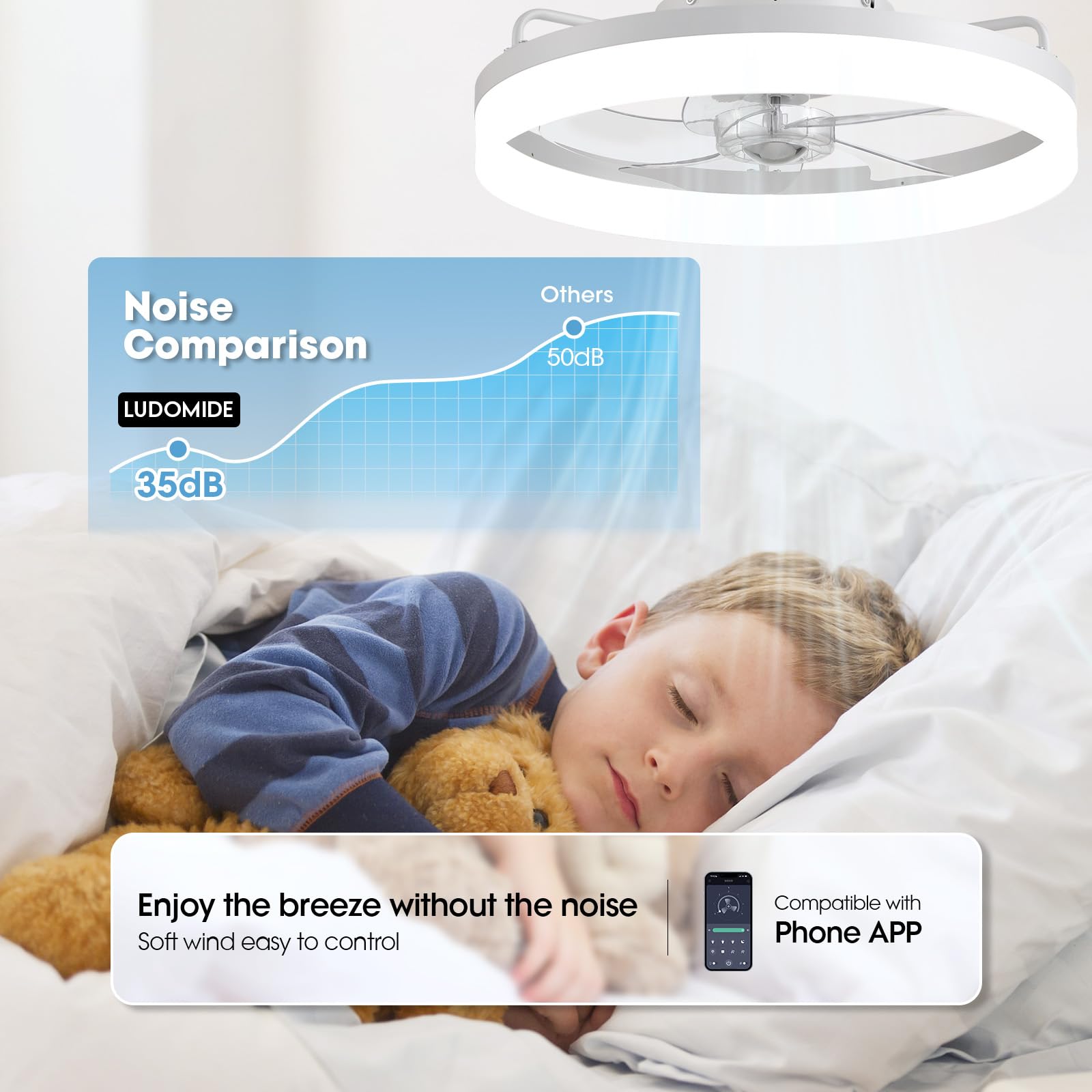【Timing & Memory Function】: This bedroom fan has a timer that can be set for 2 hours with the remote or 1/2/4/8 hours on the app. It also memorizes light settings when turned off with the remote, eliminating the need to reset them.