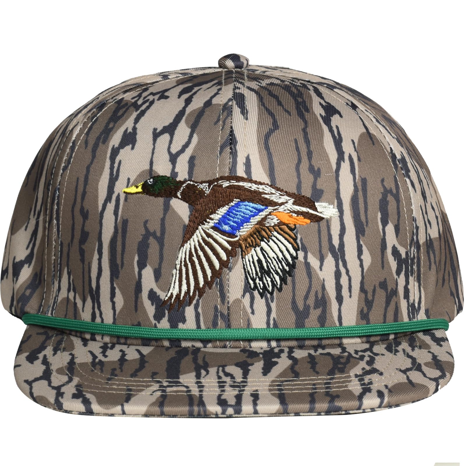 WOOD DUCK HAT - Each hat features unique and high quality embroidery. Unique flying wood duck embroidery with unmatched details on front panel. Wood ash front panel and MossyOak Bottomland camo flat brim makes Outdoorsman Pro hat more hardcore & stylish. The great gift for duck hunters, outdoorsman and wildlife enthusiast