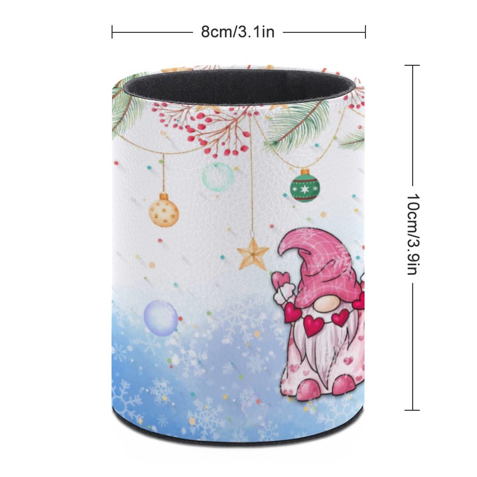 Pen Holder Durable leather, antiskid pad at the bottom of pen containter, solid firmly stand on the desk. Waterproof, surface is easy clean. Size : 4.33x3.15 inch (11x8cm) As a pencil cup ideal for hold writing utensils and office supplies such as pens, pencil, scissor, rulers, brushes, markers, highlighters, eraser, paper clip, letter openers, and more. Also can as a makeup organizer, place in makeup brushes, eyeline. NOTE: Not for children under 3 yrs.r, lipsticks, nail polishes, mascara, and other small personal items. The dimensions are measured manually with deviation of 1-3mm.