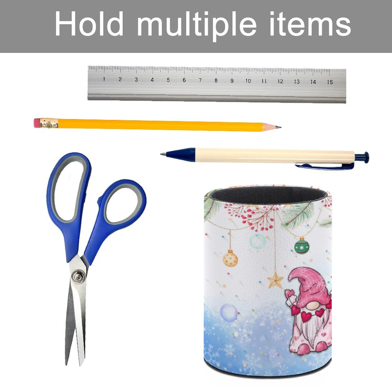 Size - Pen Holder is 4.33x3.15 inch (11x8cm). Using polyurethane PU, strong and durable material, no fading. It holds lots of pens, pencils, makeup brush small items, keeps everything pretty organized and that will dress up your home desk and office table.