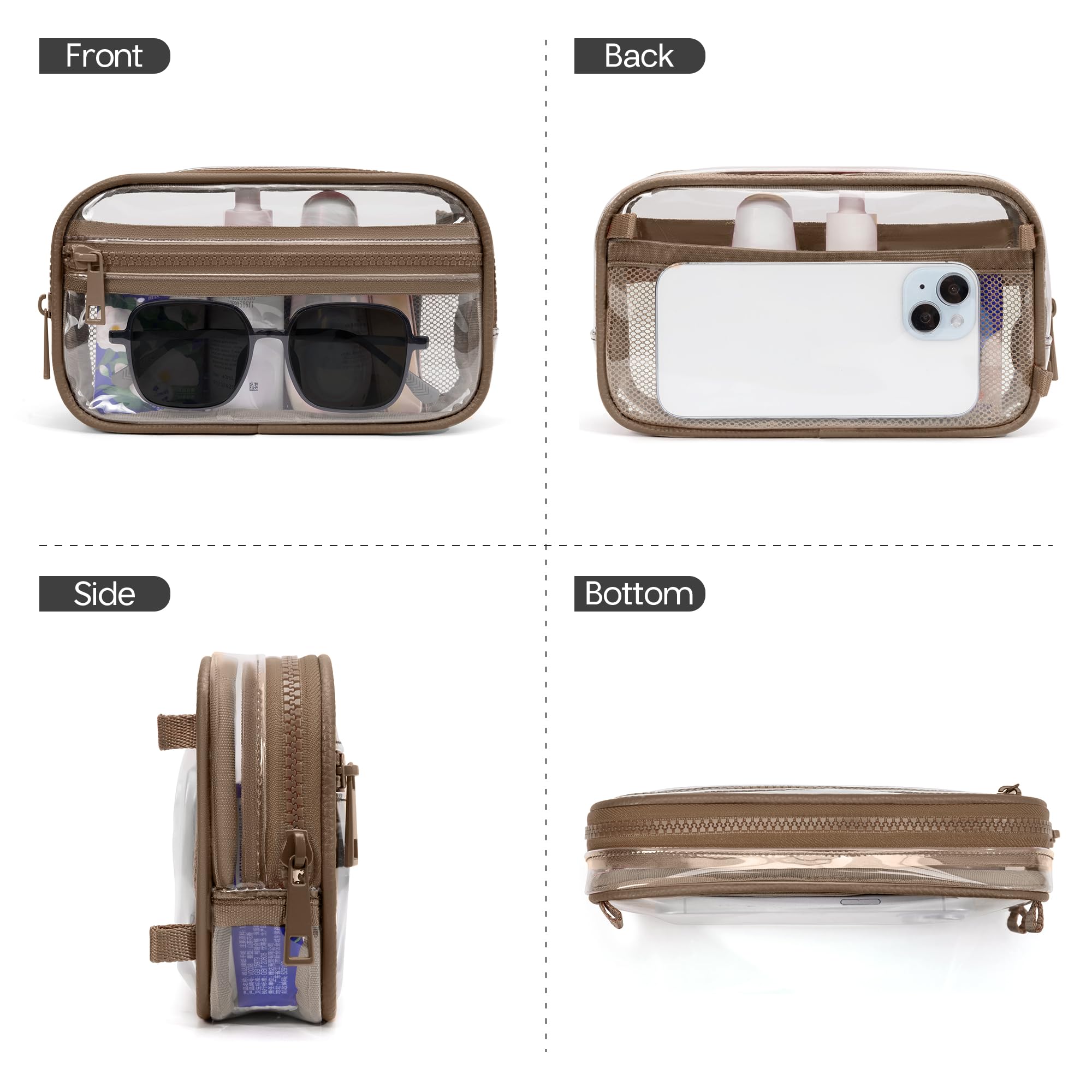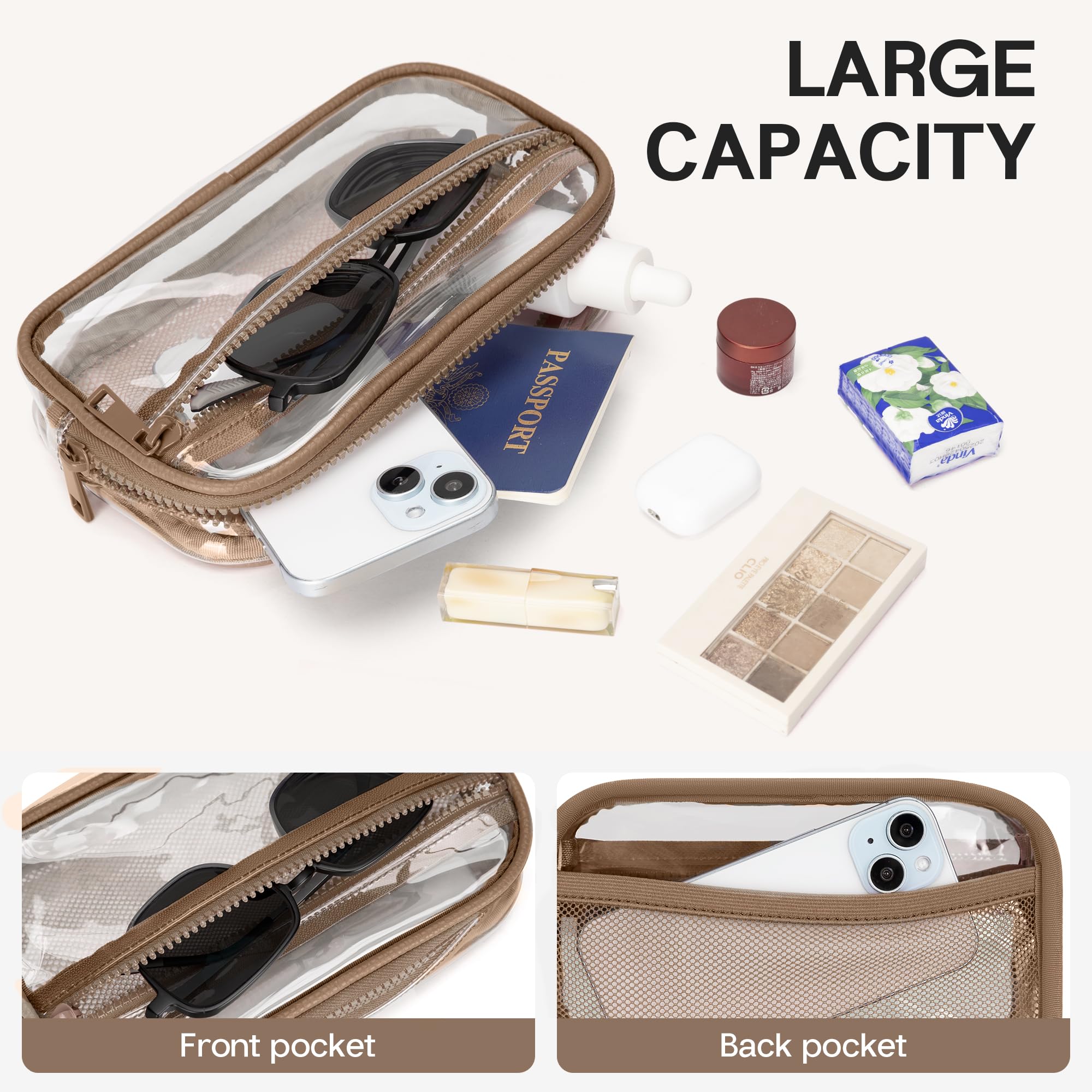 【Compact Yet Spacious Clear Purse】: Don't let the small size fool you. This clear bag for stadium events has multiple compartments to hold your phone, wallet, keys, and cosmetics. The internal zipper pocket keeps your valuables secure.