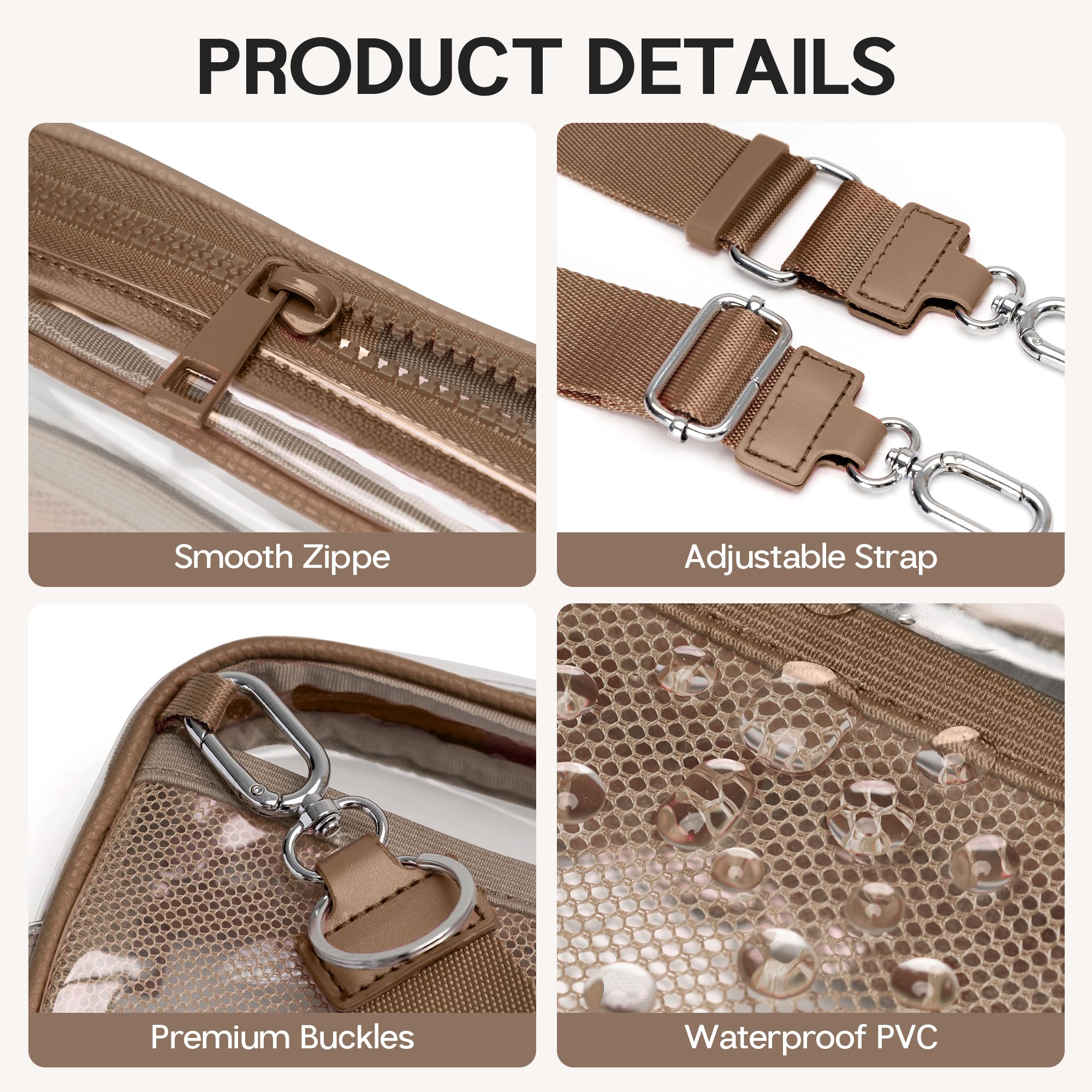 【Fashionable, Durable & Water-Resistant】: This clear concert bag Made from water-resistant PVC ,It's easy to clean waterproof, portable, durable, sturdy and light. In daily life, dating, shopping, sports, walking, work, traveling, biking, camping, etc, is built to last. It can free your hands and make the outing more comfortable and reassuring.