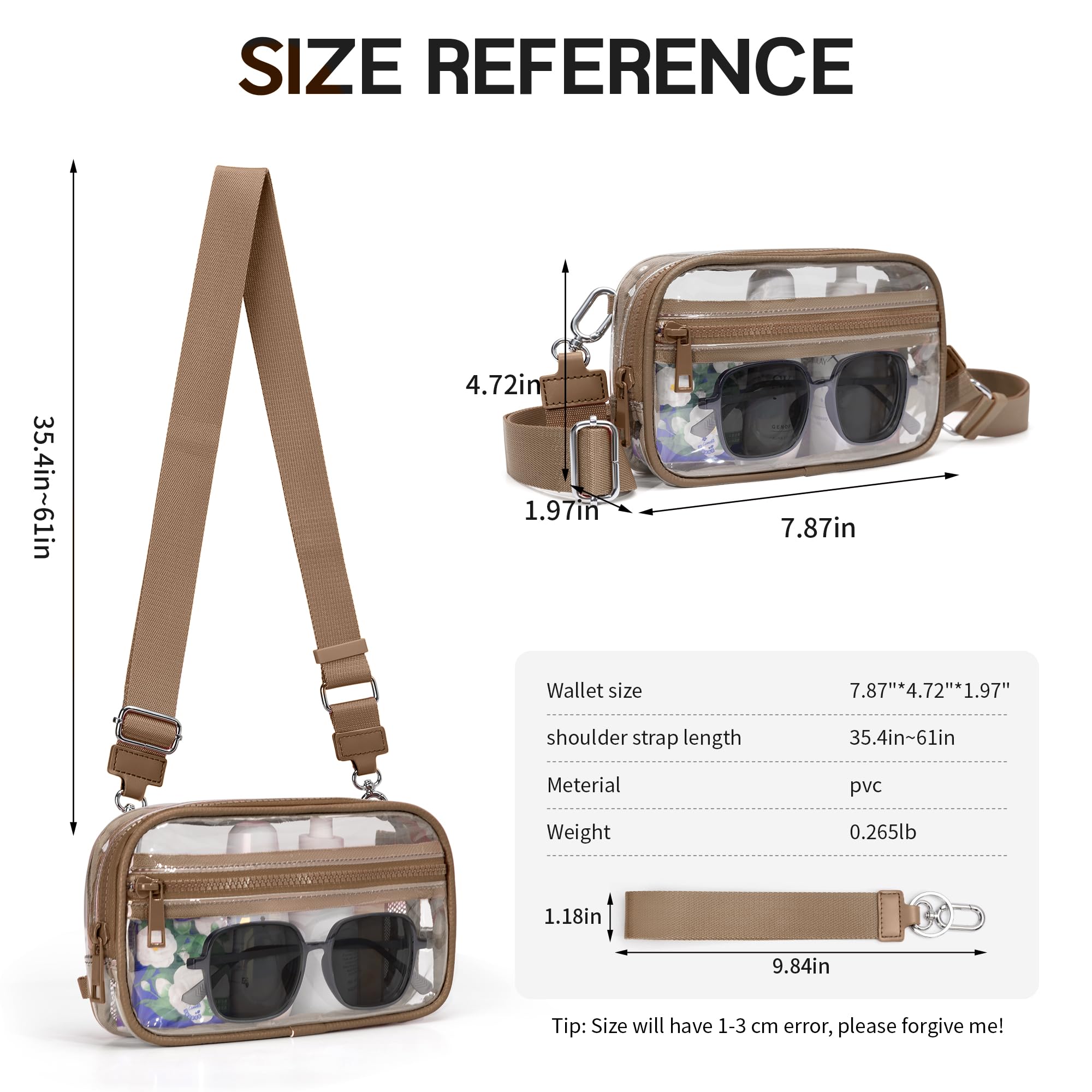 【Multi-Way Transparent Carry】:This Wristlet Wallet Weighing only 0.5lbs, see-through bag can be worn as a sling backpack, cros body bag, chest bag and shoulder bag, making it lightweight and convenient to carry. adjustable strap (32" to 56") offers a custom fit, making this clear purse both versatile and convenient for any event.