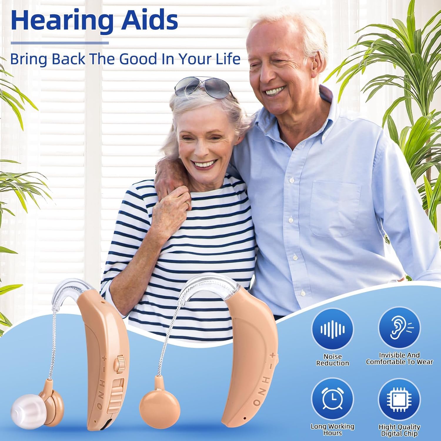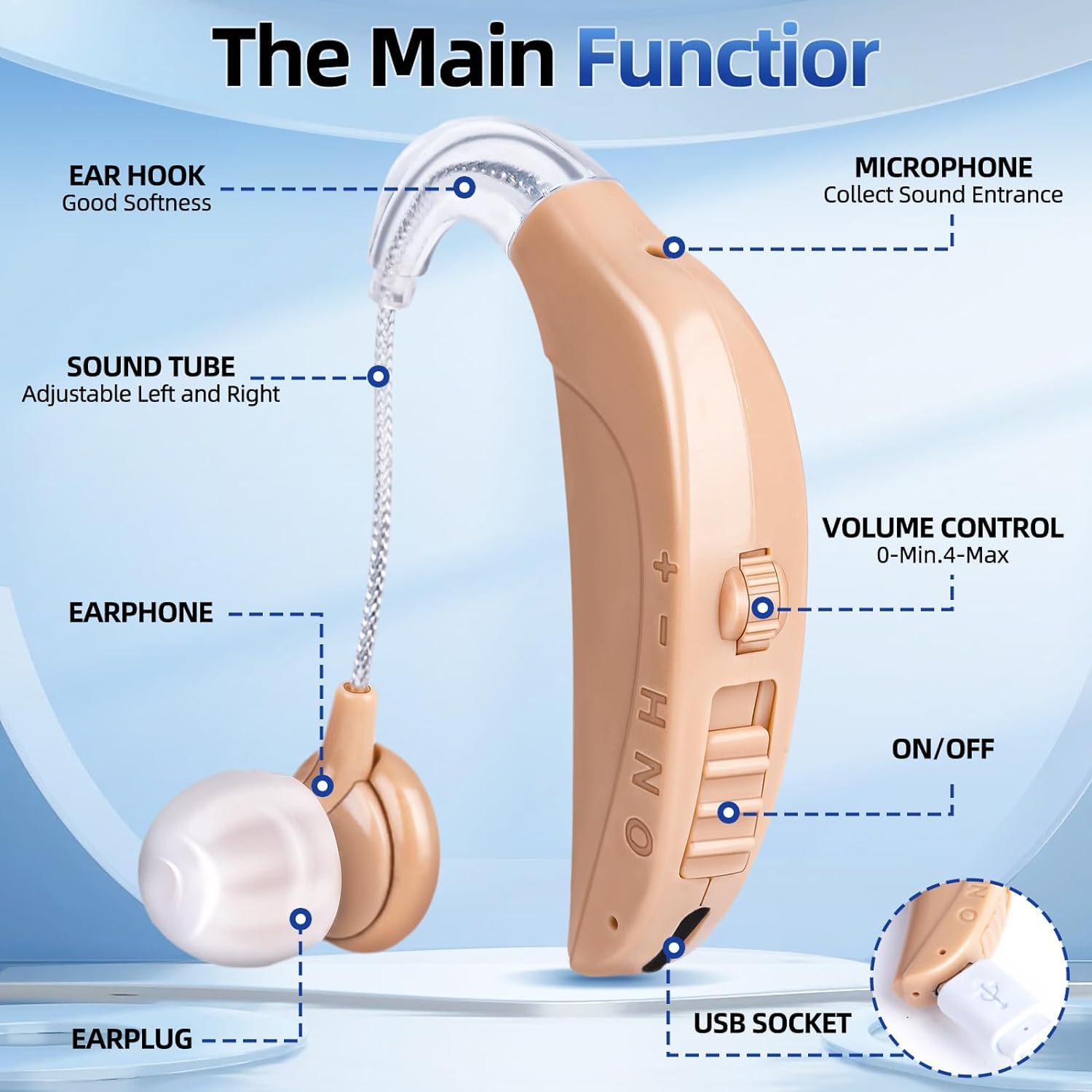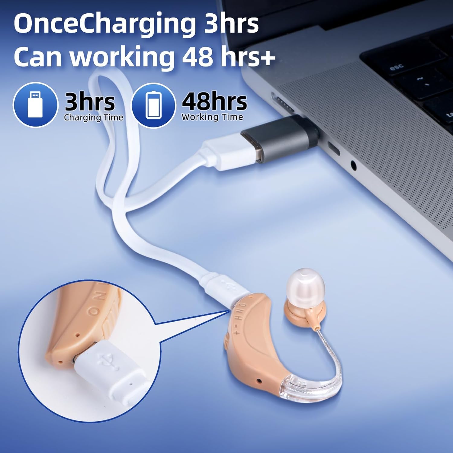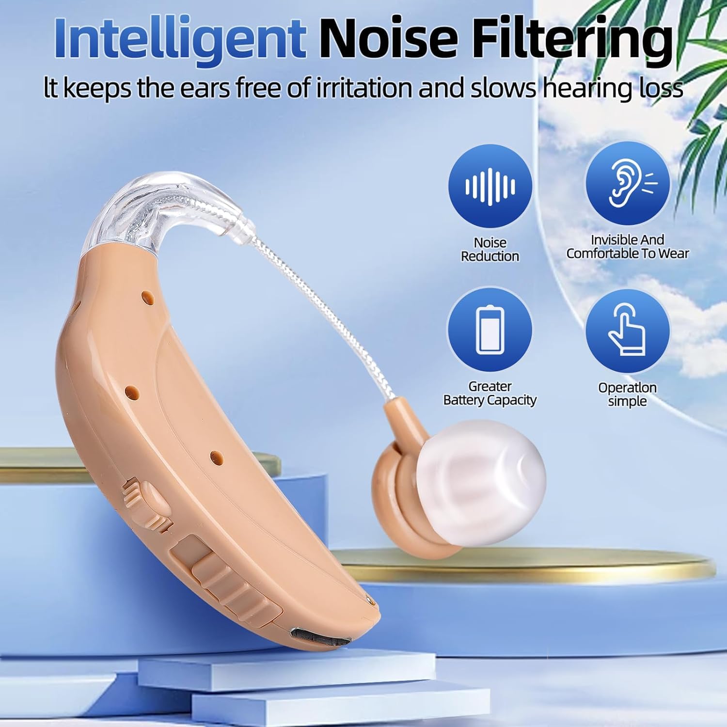 【Compact and Portable】: Hearing amplifier rechargeable is lightweight and compact, fit snugly into the ear canal, and are designed for people with mild to severe hearing loss, allowing them to experience the pleasure of clear sound. The color is close to your skin color and is well concealed when worn. It can help you restore your lost hearing.