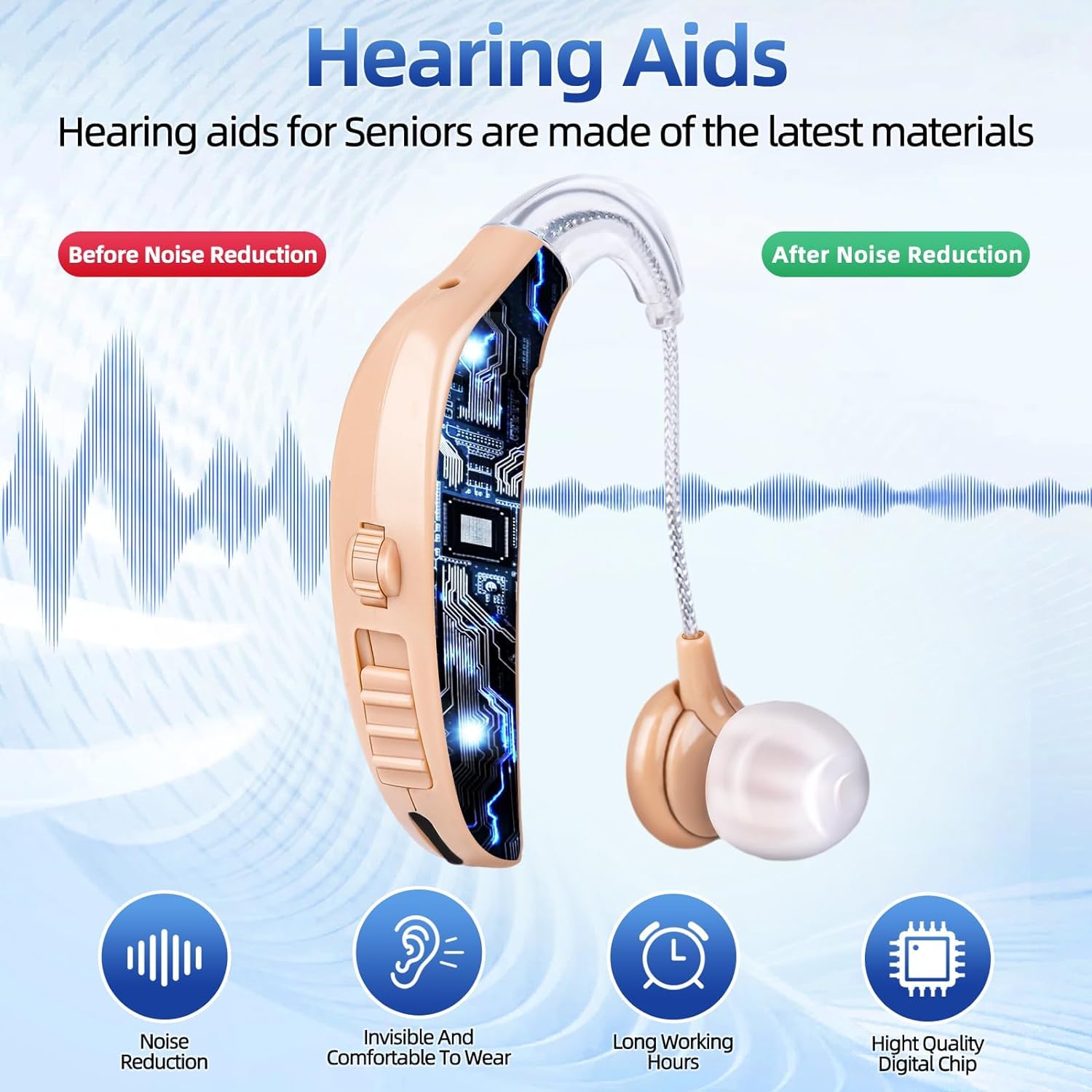 【Improve Hearing】: This hearing amplifier for severe hearing loss uses advanced digital technology, which can enhance the sound quality very well. Behind-the-ear hearing amplifier have intelligent noise reduction technology, which allows you to differentiate between different sounds to cope with different environments.