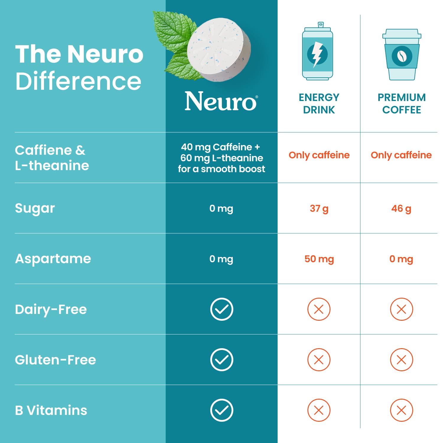 The Perfect Balance - With 60mg of L-theanine per piece, our energy and focus formula promotes enhanced focus and stress reduction to smooth energy boosts.