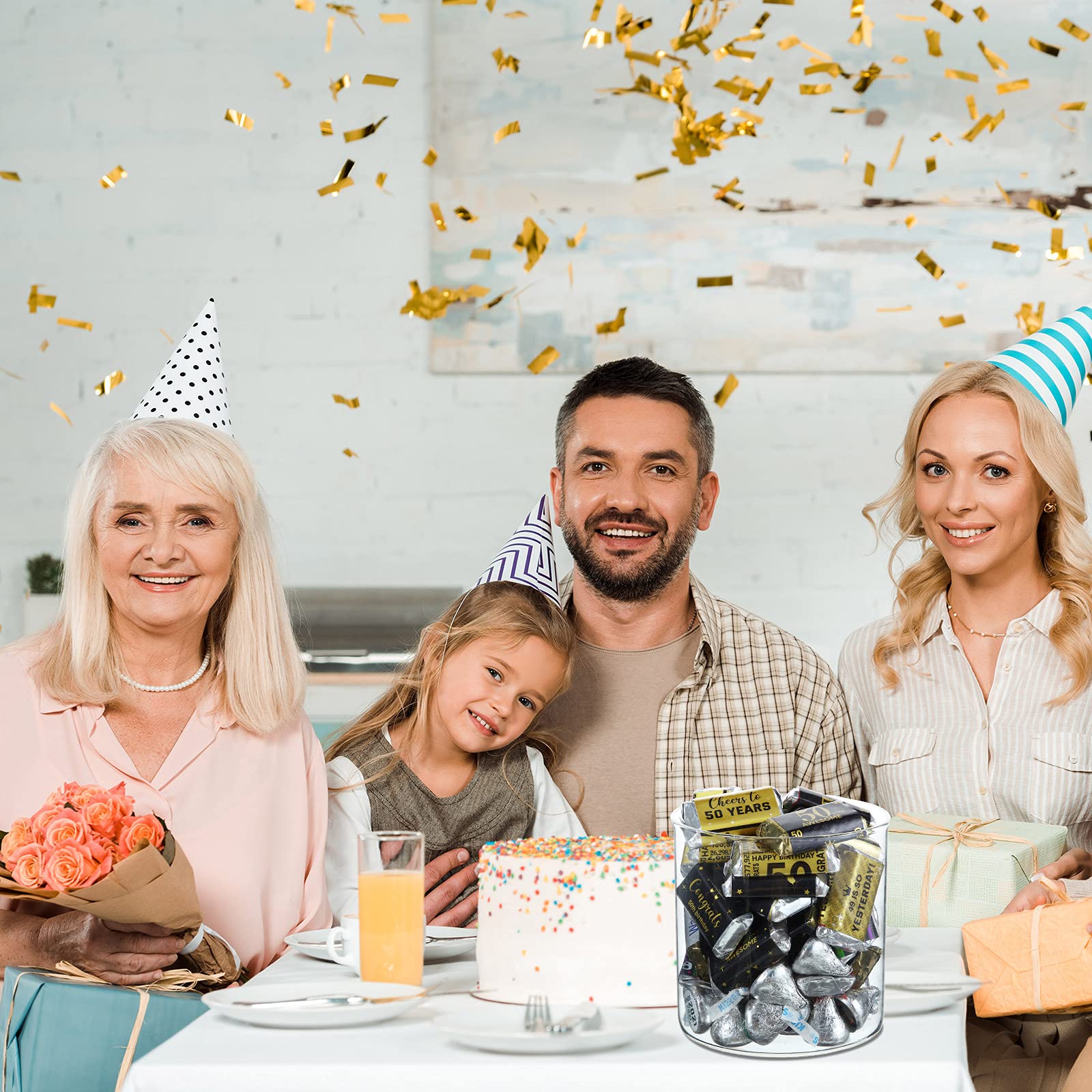 50 Years elements: shiny metallic wrappers are full of classic 50th birthday elements, such as [50 years awesome], [congrats 50th birthday], [50 years] and so on, well catching guests' eyes and easily bringing you lively birthday party atmosphere