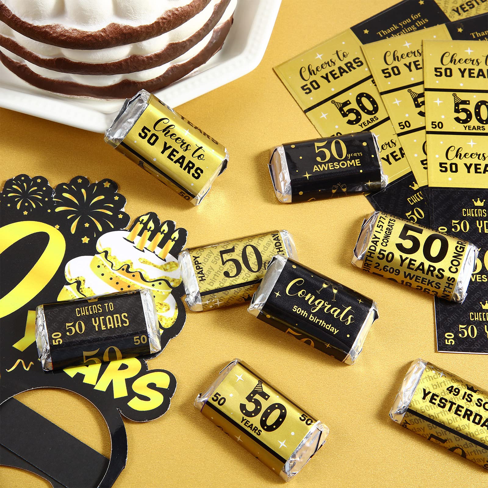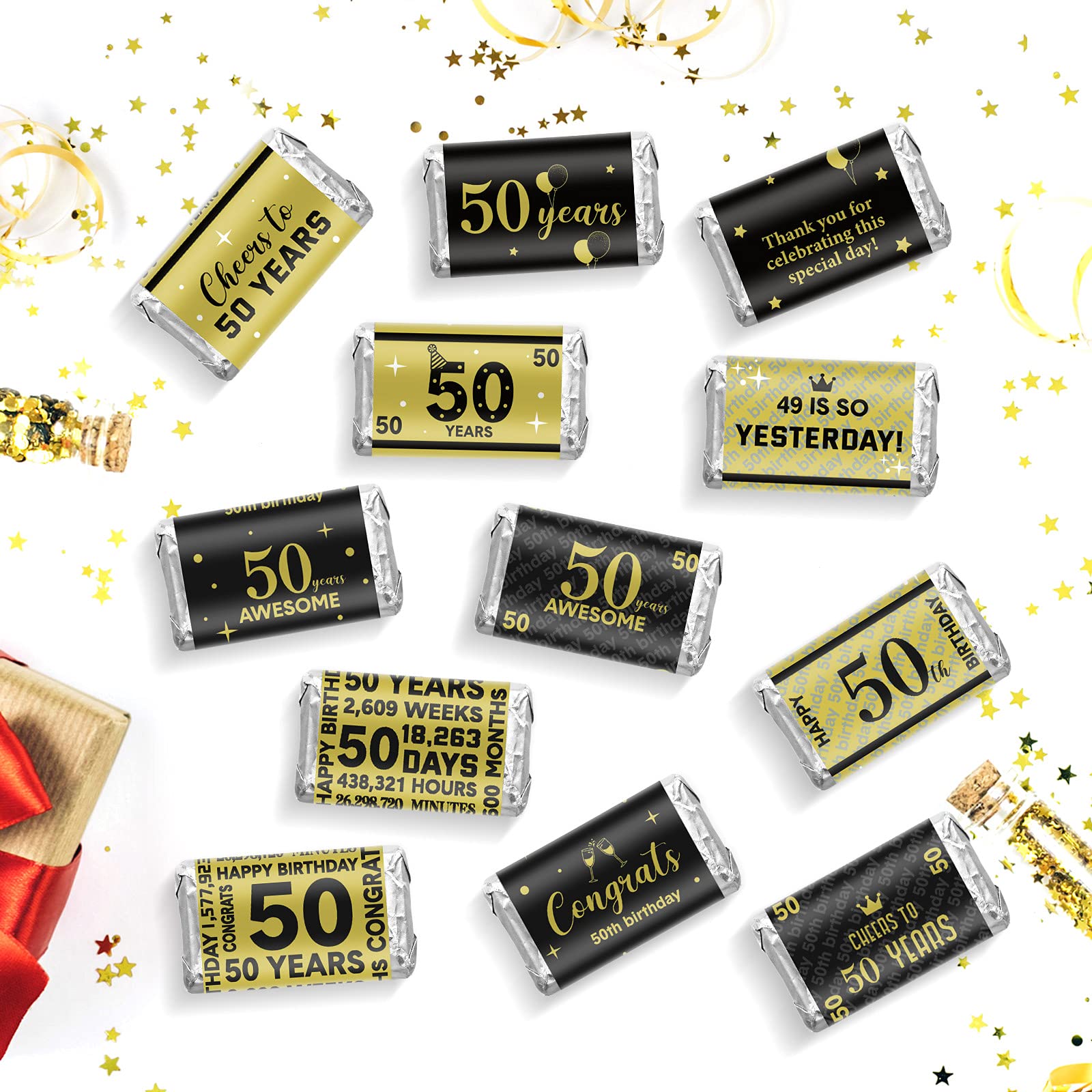 Check the size: our mini candy bar wrappers measures approx. 2.6 x 1.4 inches, suitable dimension to wrap your candy bars to create adorable 50th party decorations, you could paste them on the candy, chocolate, cards and more; Please confirm the size carefully before buying