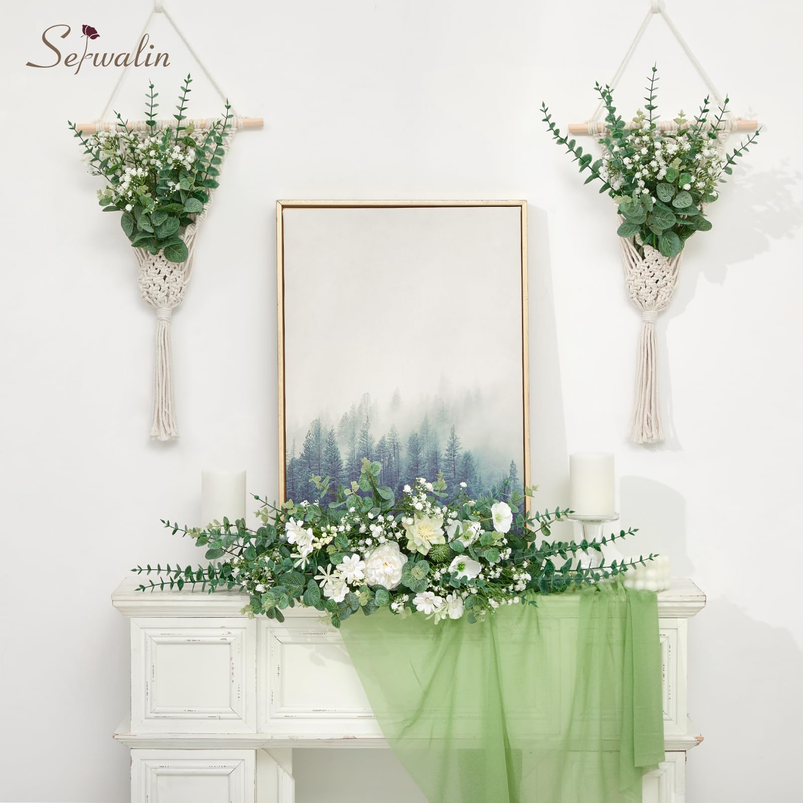 Size of Greenery: Eucalyptus stems measure about 15 inches, silver dollar eucalyptus leaves measure about 13 inches, babys breath artificial flowers measure about 15 inches, These sizes vary and you can create layered flower arrangements that stick to nature.