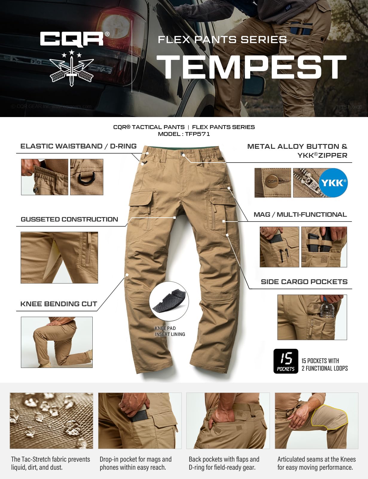 [Tac-Stretch Fabric] Improved range of movement and apt for tough conditions.