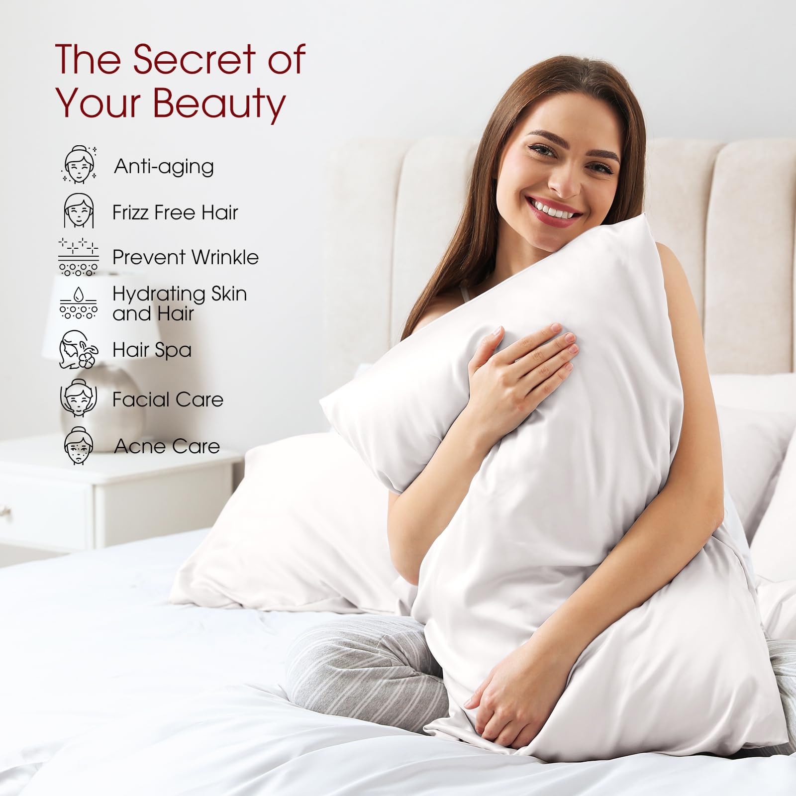 Silk Benefits for Hair and Skin:100% pure mulberry silk can reduce friction between your skin and the pillowcase, which can help prevent wrinkles and minimize hair breakage. Also,silk pillow cases are helping to retain skin moisture and prevent dehydration, which can be beneficial for maintaining skin health. Silk is naturally and it's a great choice for people with sensitive skin