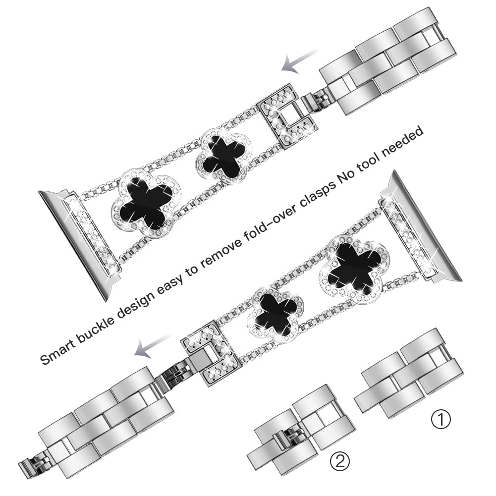 [Unique Design] This luxury Iwatch band features the most popular four-leaf clover design, it Symbolizes luck and hope. This rose gold I watch band uses diamond-encrusted craftsmanship, revealing dignity and elegance in luxury. You'll get a lot of compliments because of it, and it's the perfect combination of personality and style.