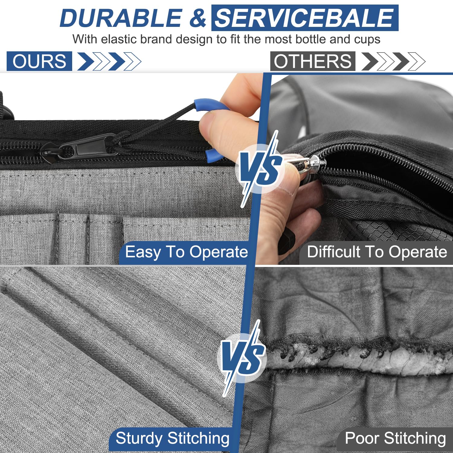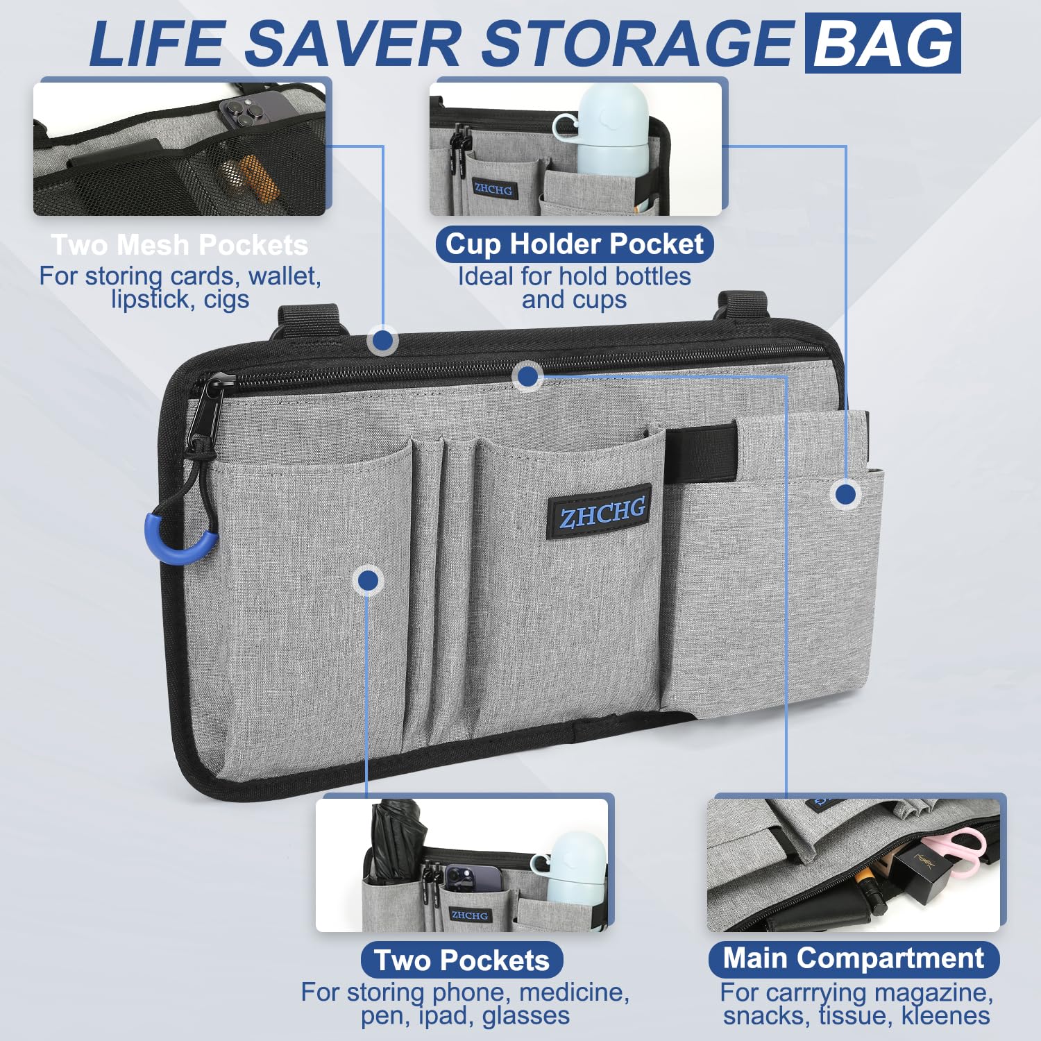 【Multifunctional】This wheelchairs bag also doubles as a cup holder, with an elastic band pocket that securely holds your drink without worrying about spills.