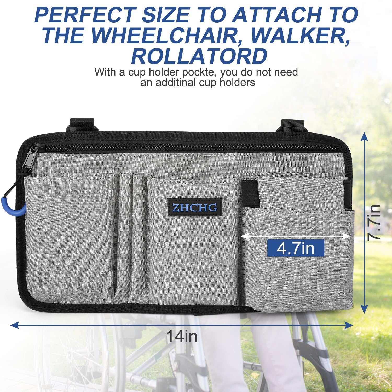 【Convenient and Easy to Attach】Attaching and removing the wheelchair accessory bag is quick and easy thanks to the durable adjustable straps. Whether you're heading out for a day trip or running errands, this convenient and practical bag is the perfect companion for any wheelchair user.