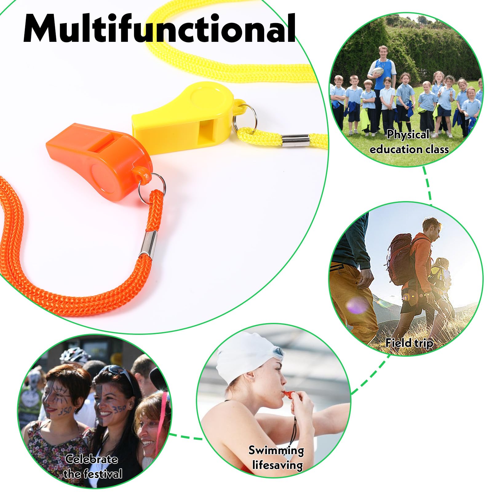 Wide Range of Applications: The whistle necklace can be used in various settings, including schools, gyms, soccer fields, and during training sessions. Party whistles is perfect for referees, teachers, lifeguards, and coaches. Additionally, the football whistle serves as an excellent tool for emergency situations, dog training, and other activities where attention needs to be quickly drawn.
