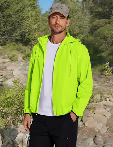 【Waterproof & Breathable】Rain jacket for men is made of high density soft shell fabric, high quality waterproof coating inside. Fully sealed seams further improve waterproof performance, advanced technology enhanced breathability that keep you cool and dry all day.