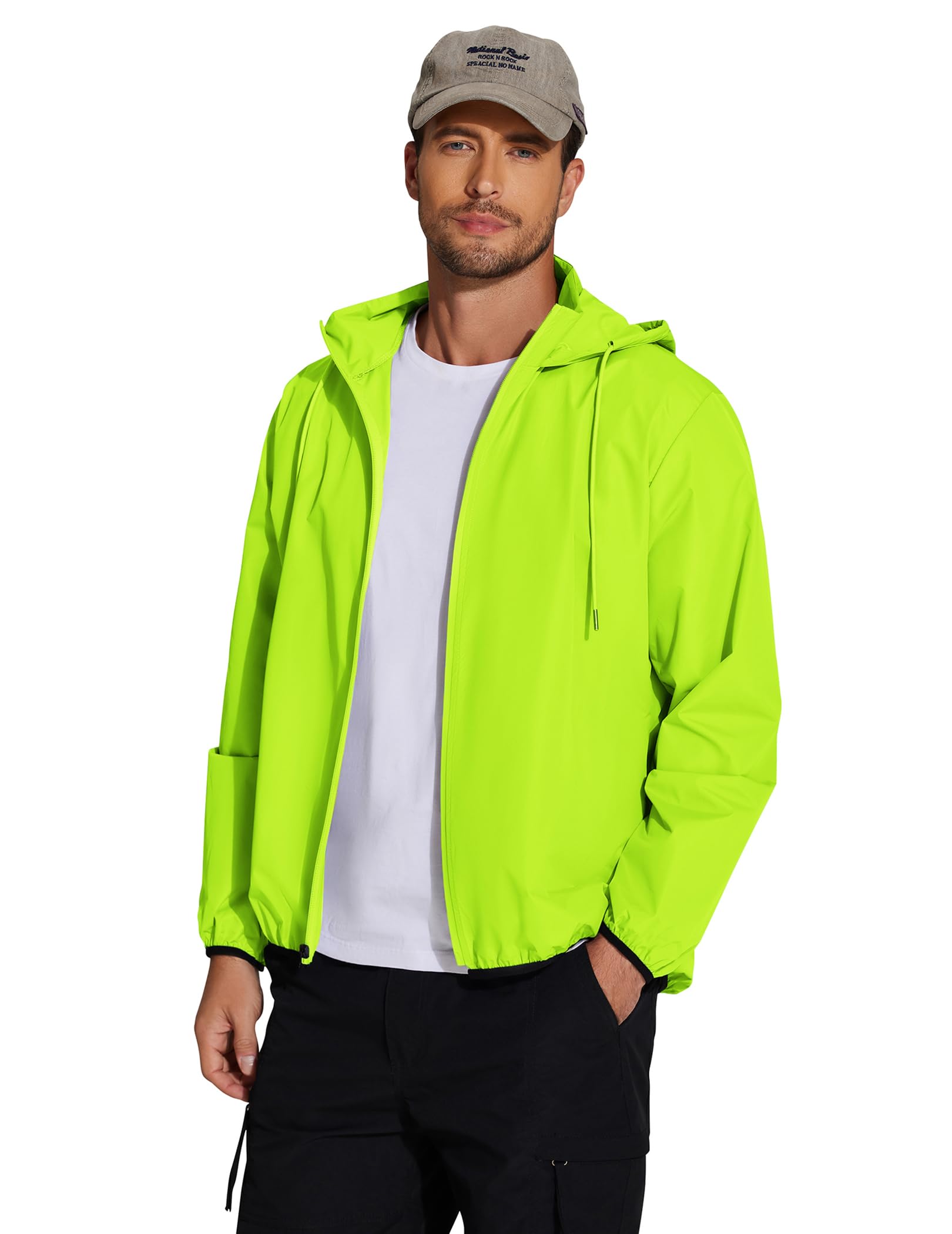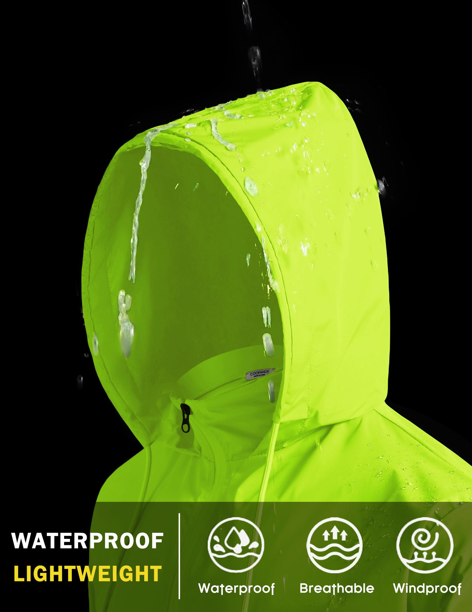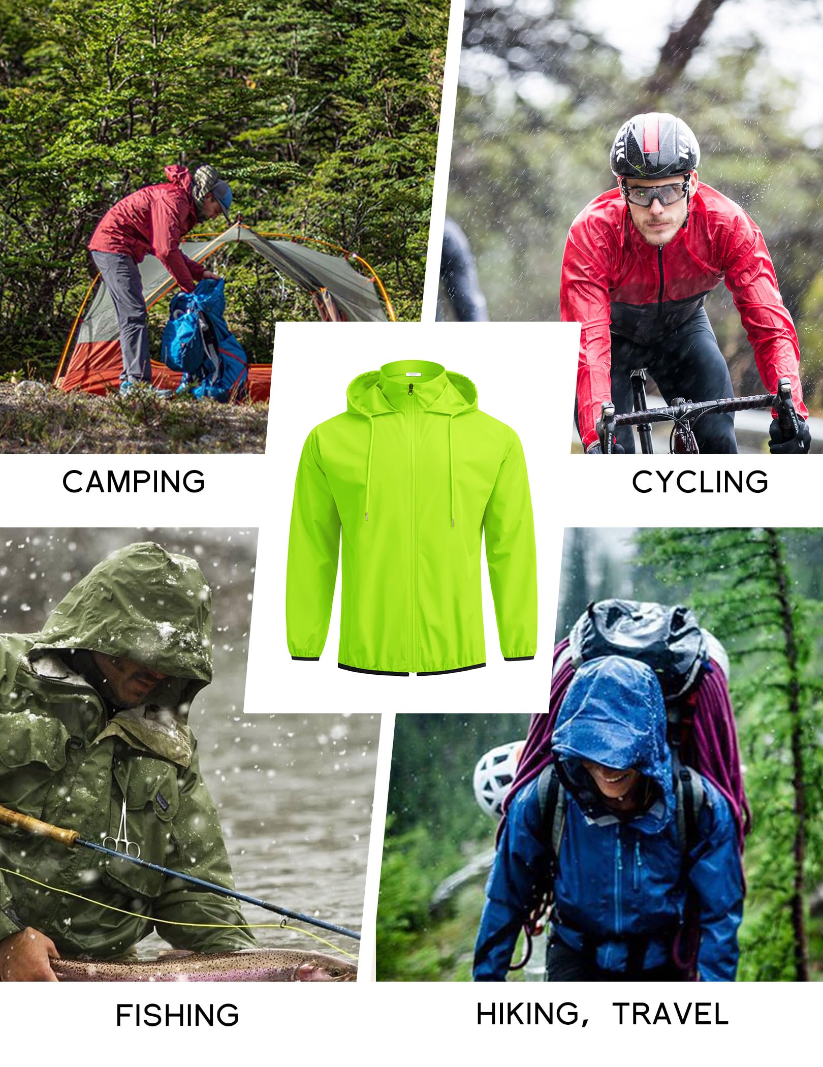 【Occassions】This lightweight rain jacket with hood is a great gear for your outdoor events like rainy day, running, cycling, hiking, climbing, camping, jogging, fishing, traveling, golf etc. Perfcet for all seasons to wear.