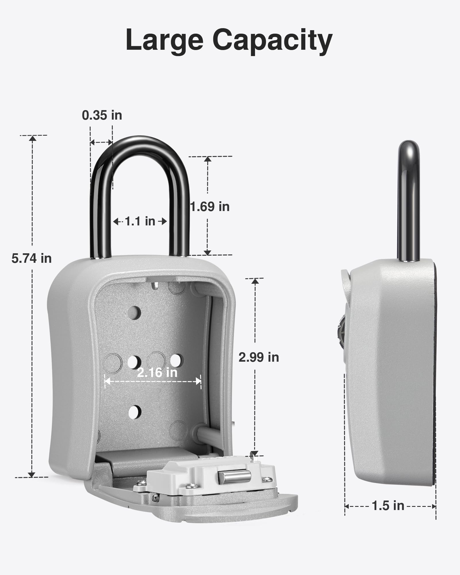 Large Capacity: The key lock box has a large internal storage space for safely storing your house keys. You can put your keys in the lockbox for emergency entry when you go out for business or a trip. Never worry about losing your keys.