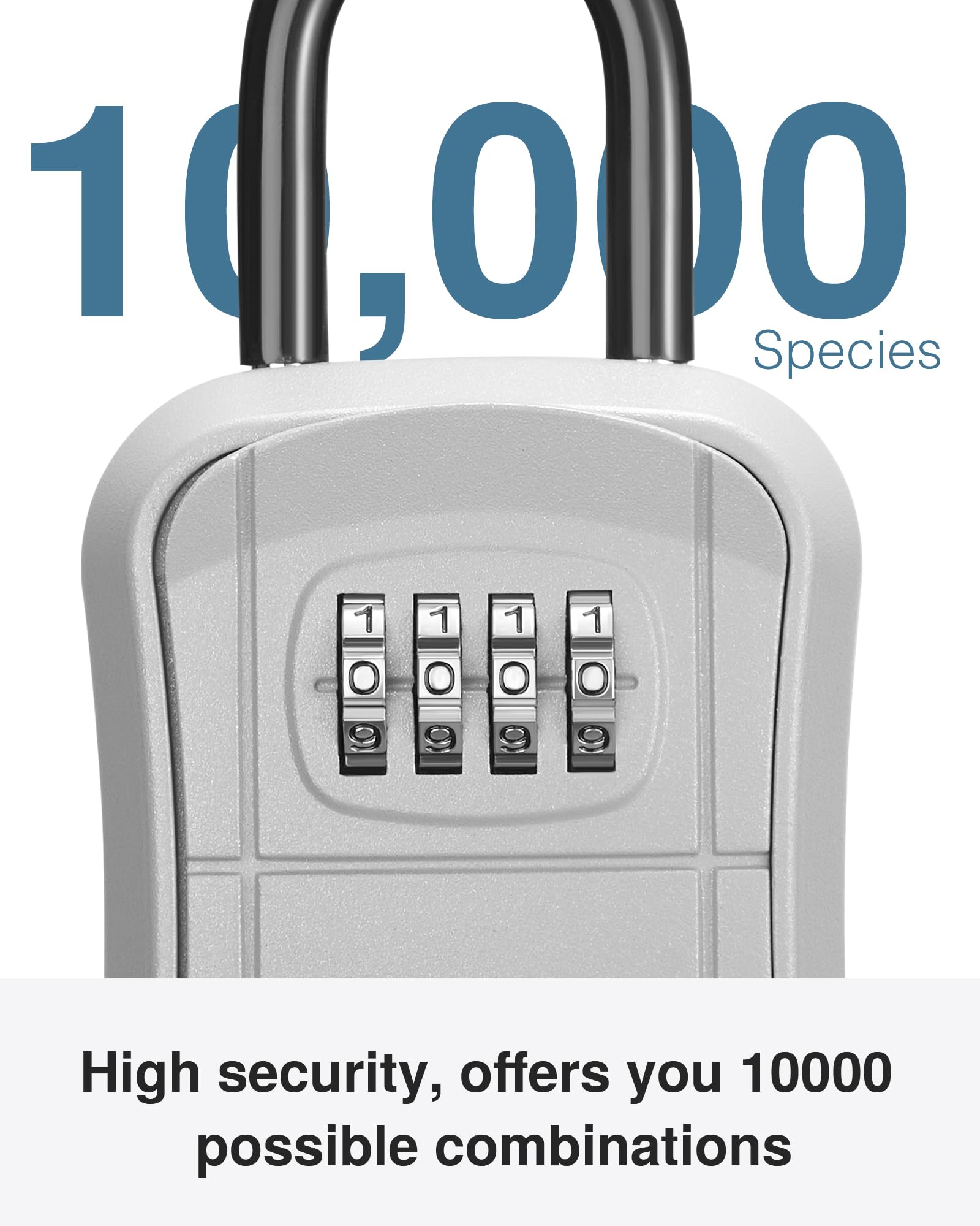 Easy to Use: The lock box code is pre-set with 0-0-0-0, you can reset your new custom 4-digit code in 4 simple steps. The numbers of dials are easy to move, providing you with 10,000 possible combinations. Safe and convenient.