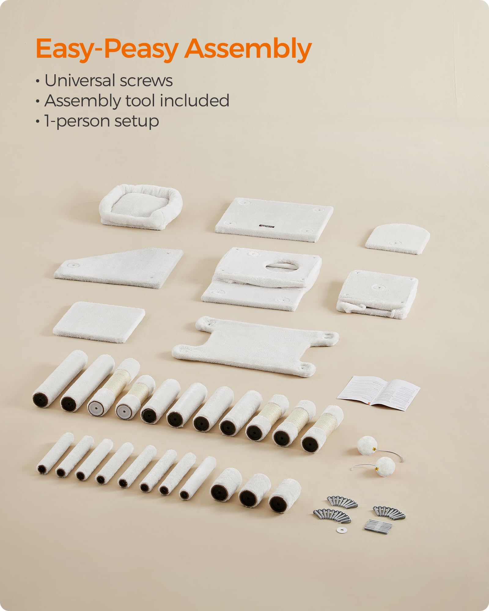 Easy to Assemble: Thanks to the universal screws and simple structure, it takes only the included Allen hex key and one person to set up this cat condo