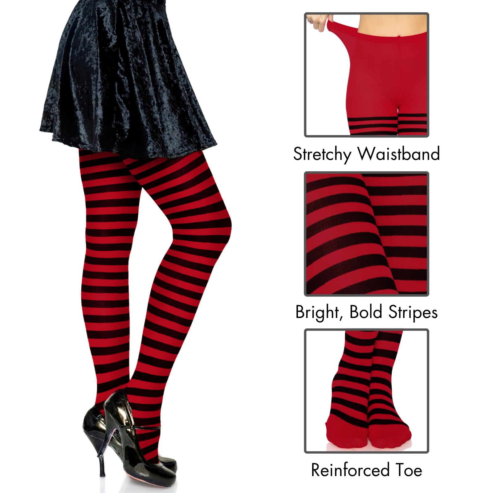 Description For when you're feeling bold and fun, you'll love the Jada Plus Size Striped Women's Tights by Leg Avenue. These amazing tights combine the classic striped tights look with the premium quality construction of Leg Avenue. Pair this with a halloween costume or wear just for fun! Package includes: 1 PC High quality hosiery fabric for long lasting wear Bright, bold stripes are eye-catching and fun Ultra soft woven pattern Perfect fit technology Reinforced toe for comfortable wear The perfect pair of novelty tights Hand wash cold, Do not bleach, Drip dry