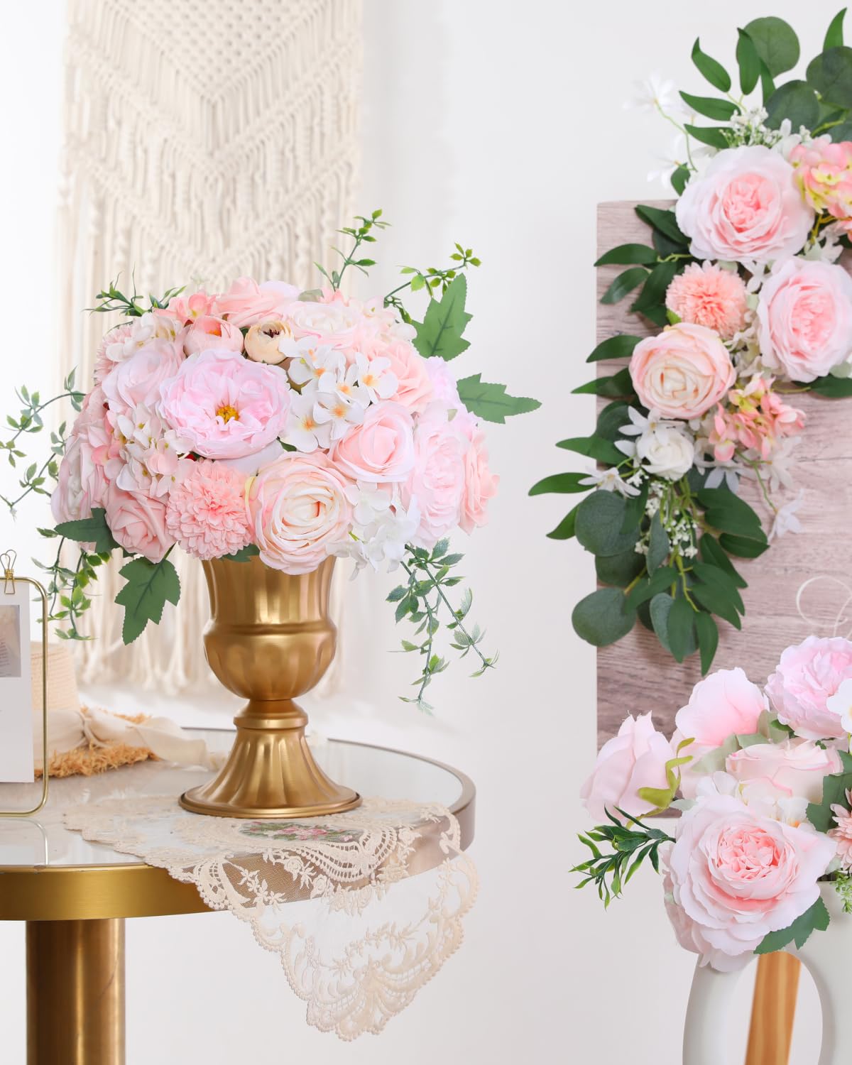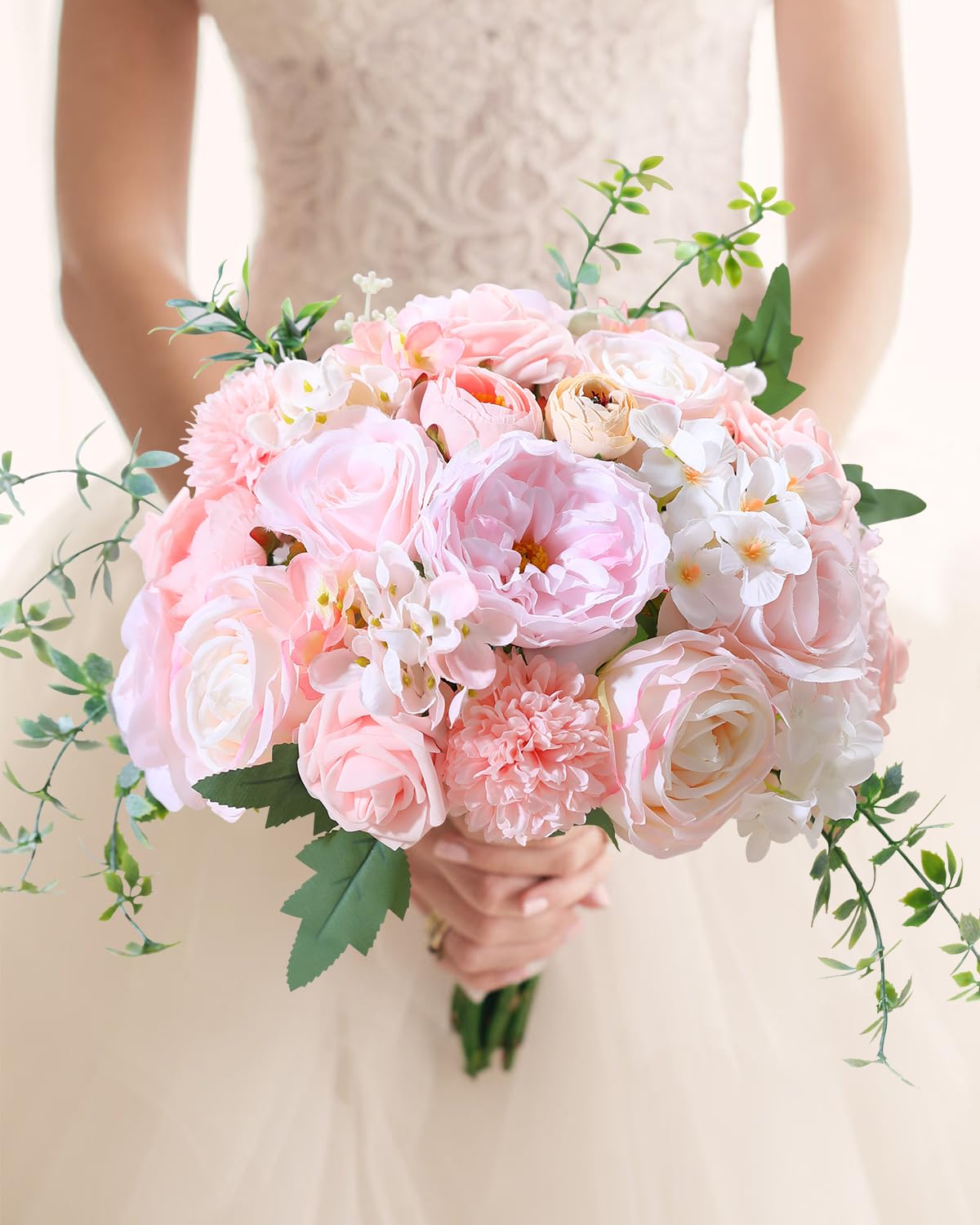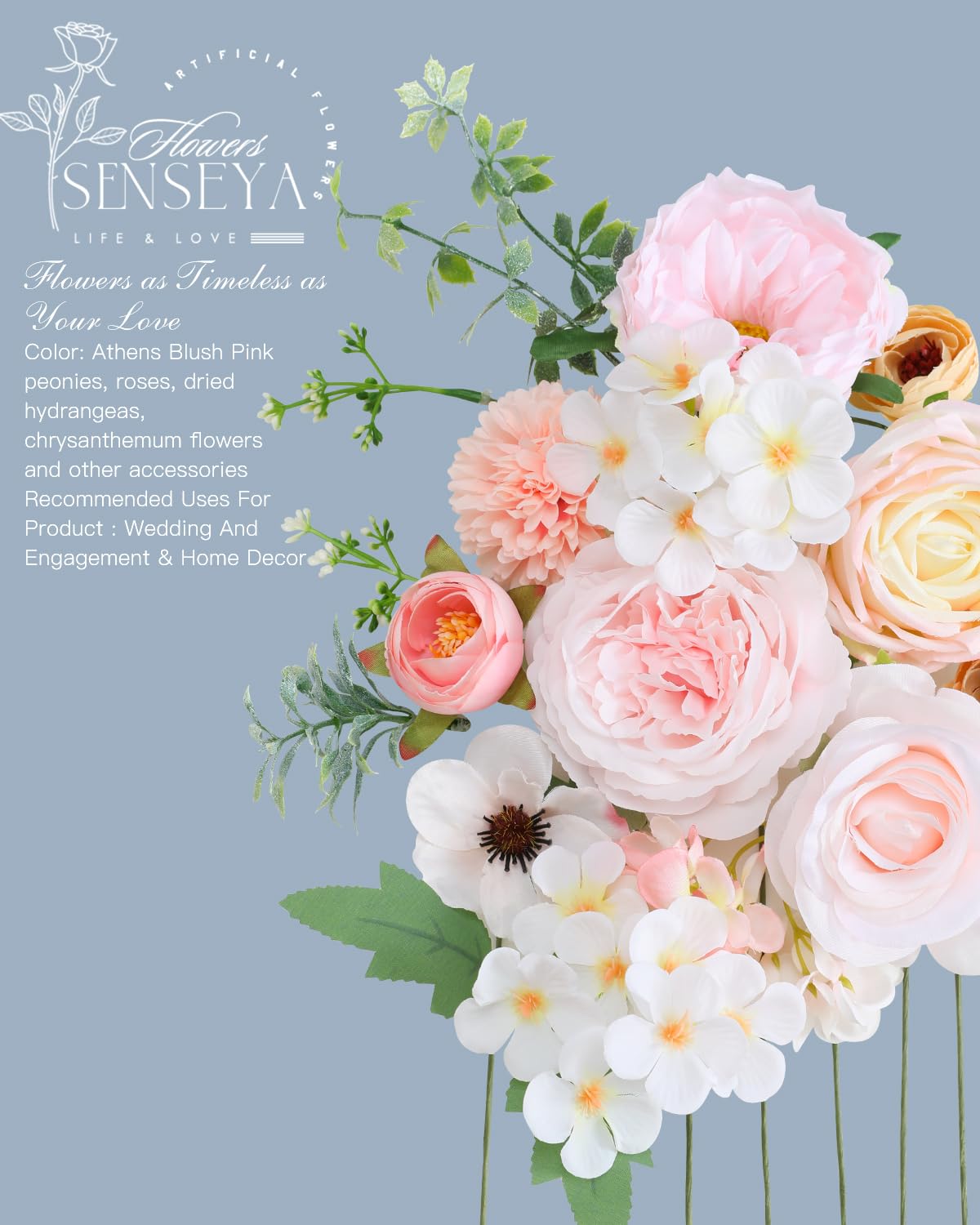 【💐COMPREHENSIVE BLUSH PINK FLOWER SET】 Our set includes a total of 24 pieces: peonies, roses, dried hydrangeas, chrysanthemum flowers and other accessories. It does not come with pre-arranged leaves, allowing you to customize the greenery according to your preferences. Add your favorite foliage to complete the look. Everything comes in a cute box, making it an easy giftable item.