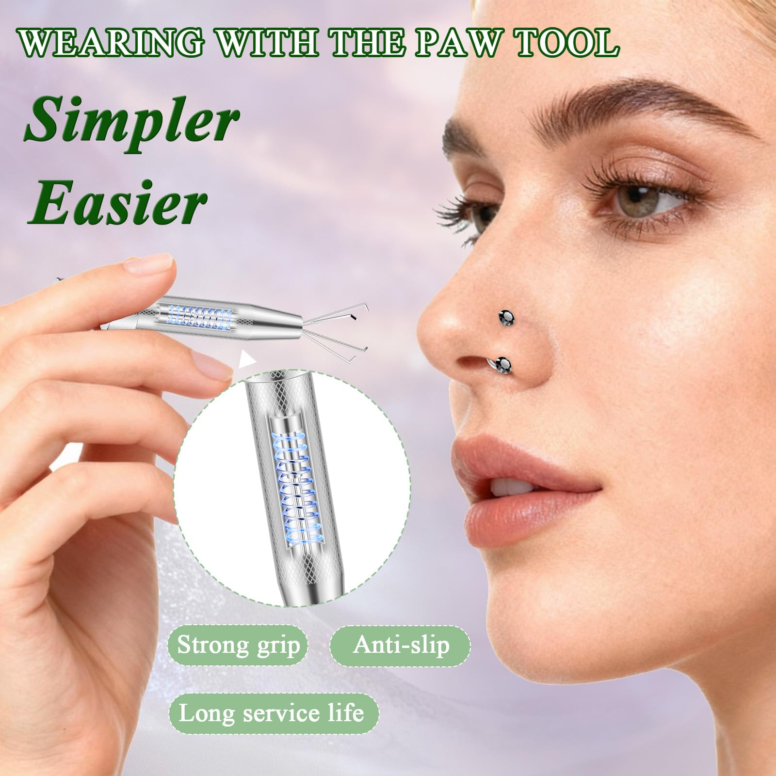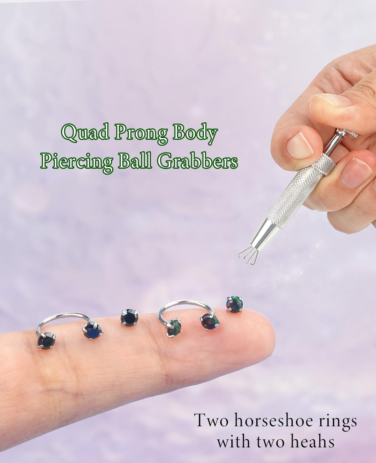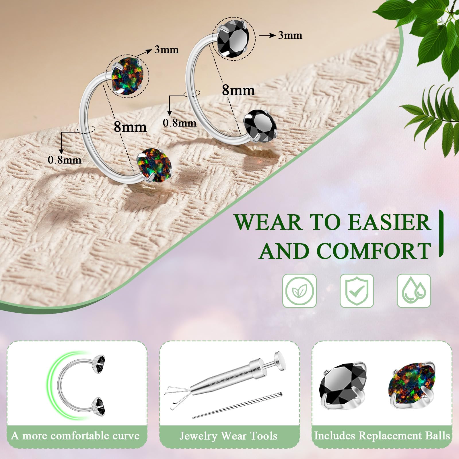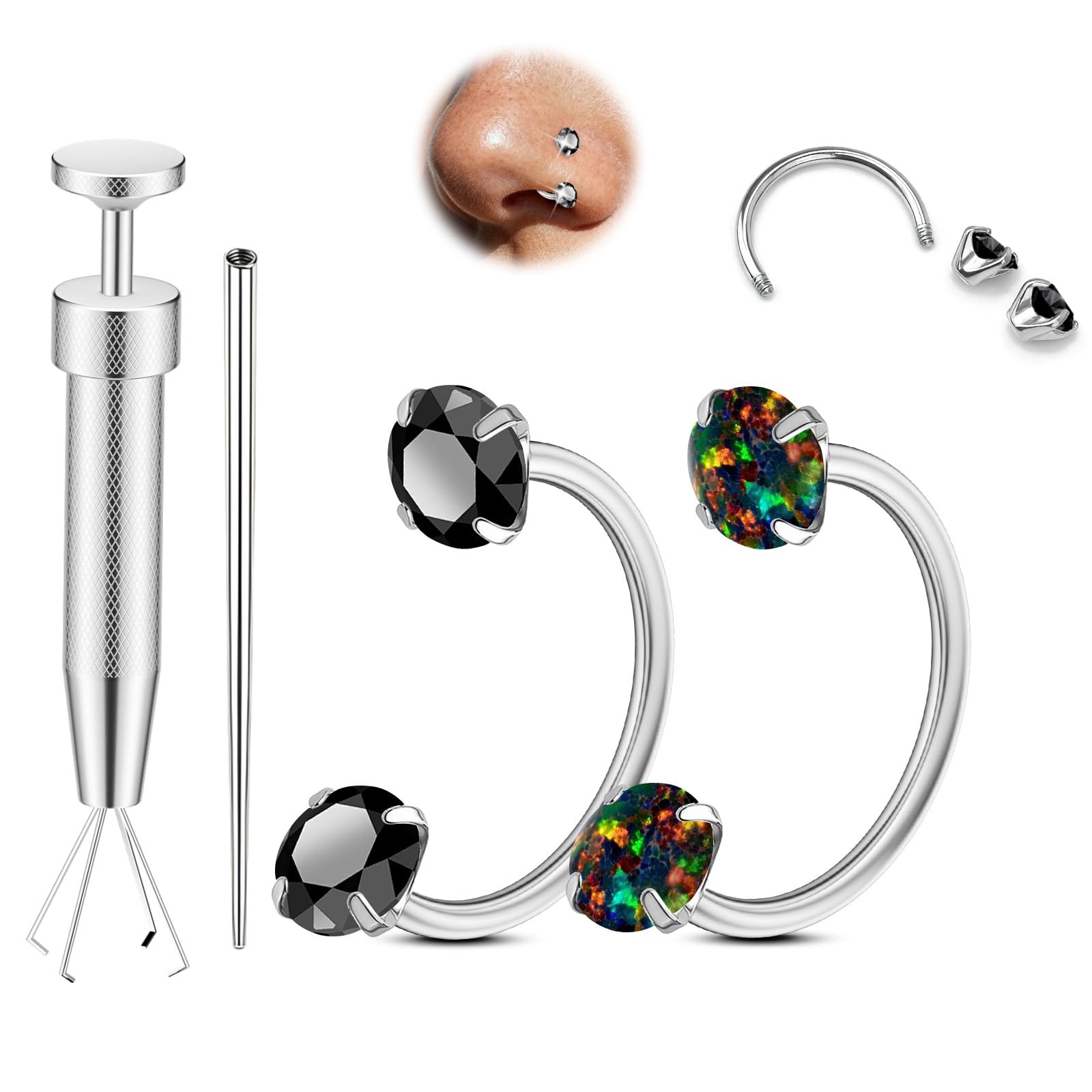 Complete Set: Comes with 2PCS surgical-grade stainless steel horseshoe nose rings, 1PC piercing ball grabber, 1PC piercing taper tool, and 2 extra replacement balls — everything you need for effortless piercing care.