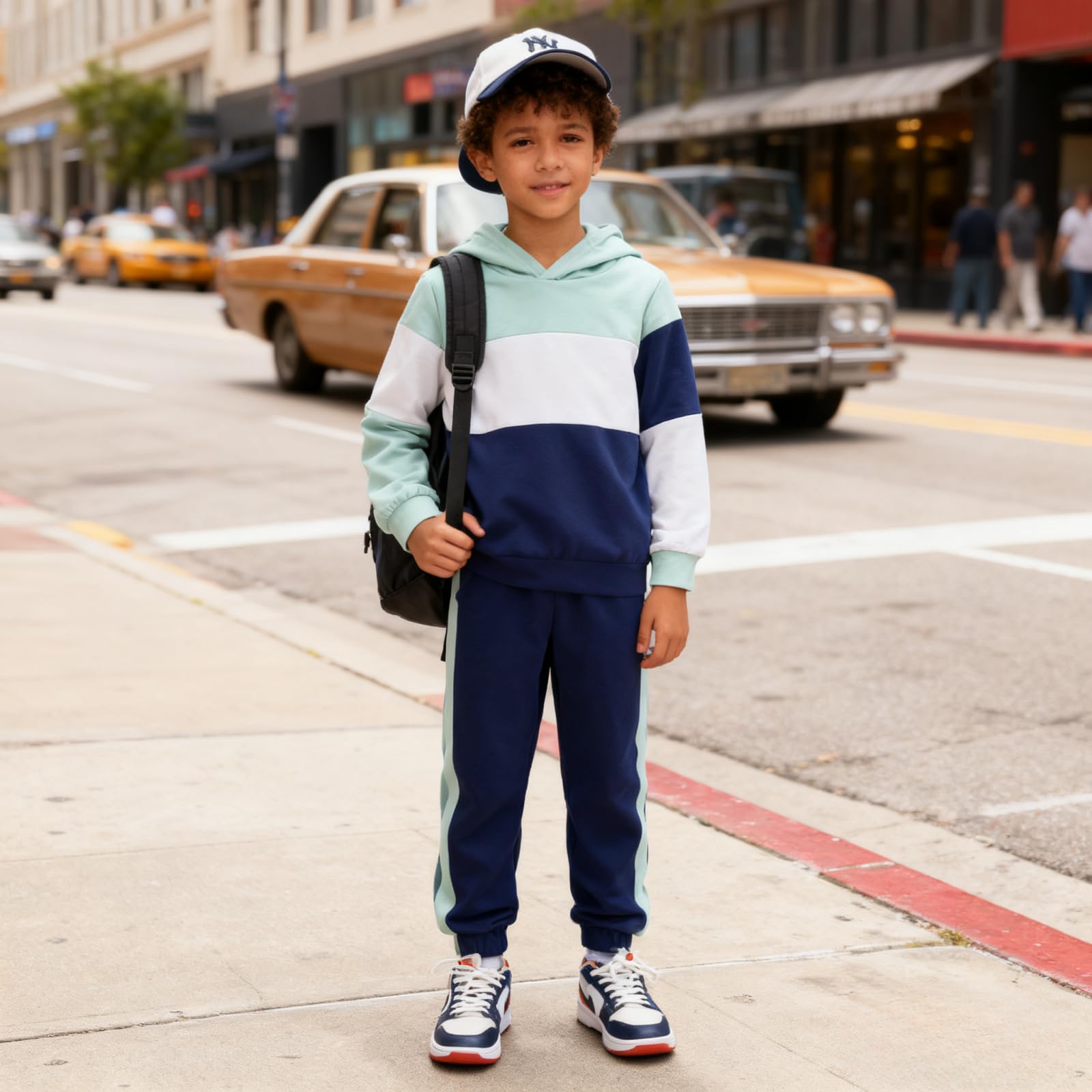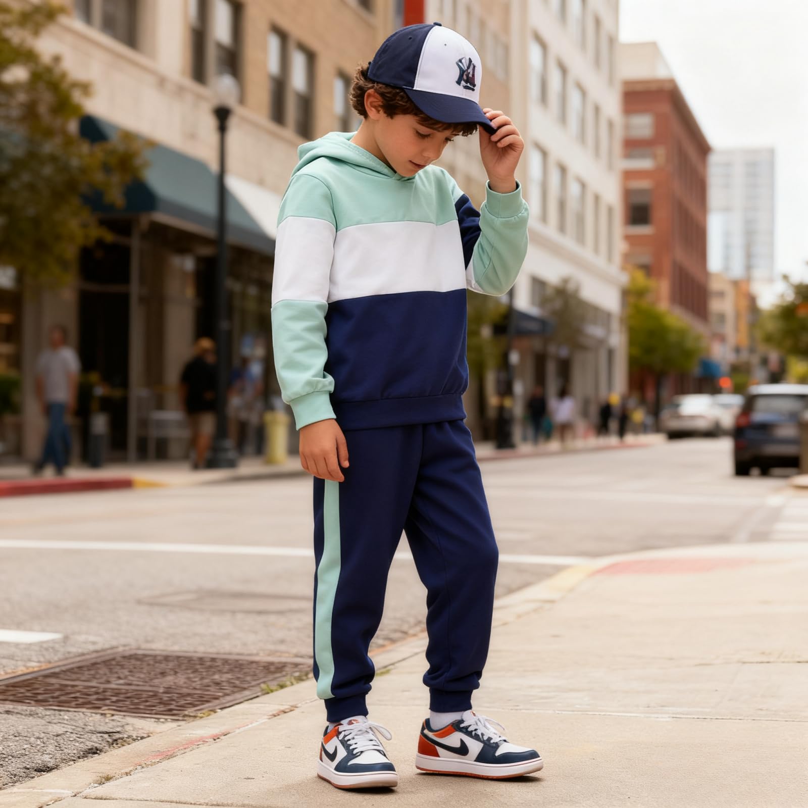 【Size Option】: Our hoodie suit fit for 5-6T boy outfits, 6-7t big boy sweatshirt pants set, 7-8t winter boys clothes, 9-10Y boy colorblock clothes fall,11-12Y boys outfits set. Hurry up to buy this cool and fashion boys clothing set!