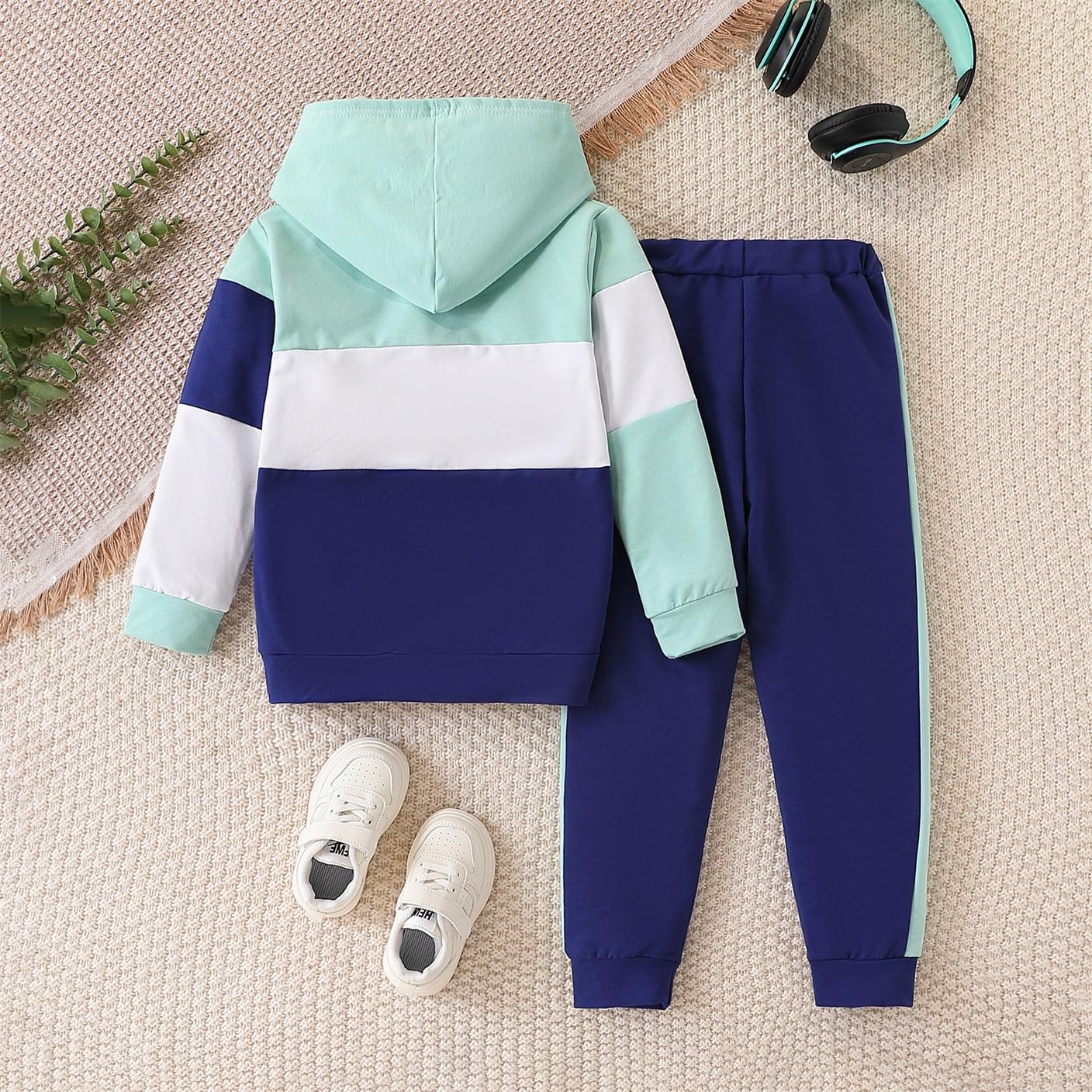 【Classic & Stylish Design】: Boys clothes set with hoodie colorblock design, elastic waistband pants, easy to put on / off. Fashion style will have your little boy up on the latest trends and he will get a lot of compliments.