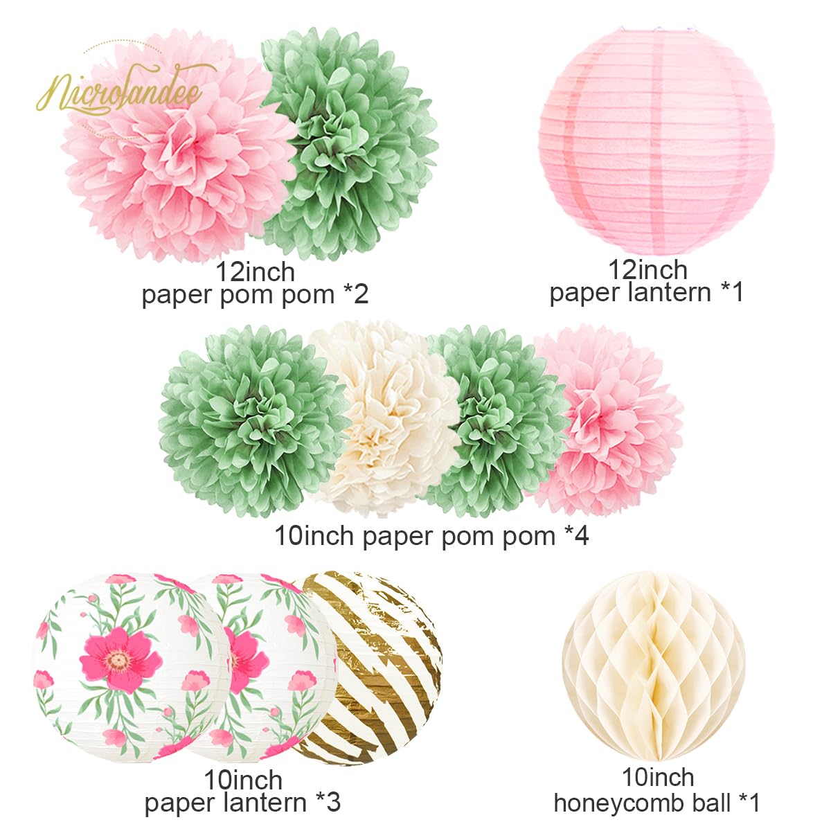 🦋PREMIUM VALUE PACK - This set includes 3pcs paper lanterns of 10 inch in diameter; 1pcs paper lanterns of 12 inch in diameter; 4pcs 10inch tissue paper pompoms; 2pcs 12inch tissue paper pompoms; 1pcs 10inch honeycomb balls; 1*50G party confetti. *LED lights not included.