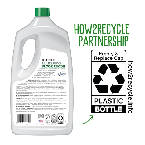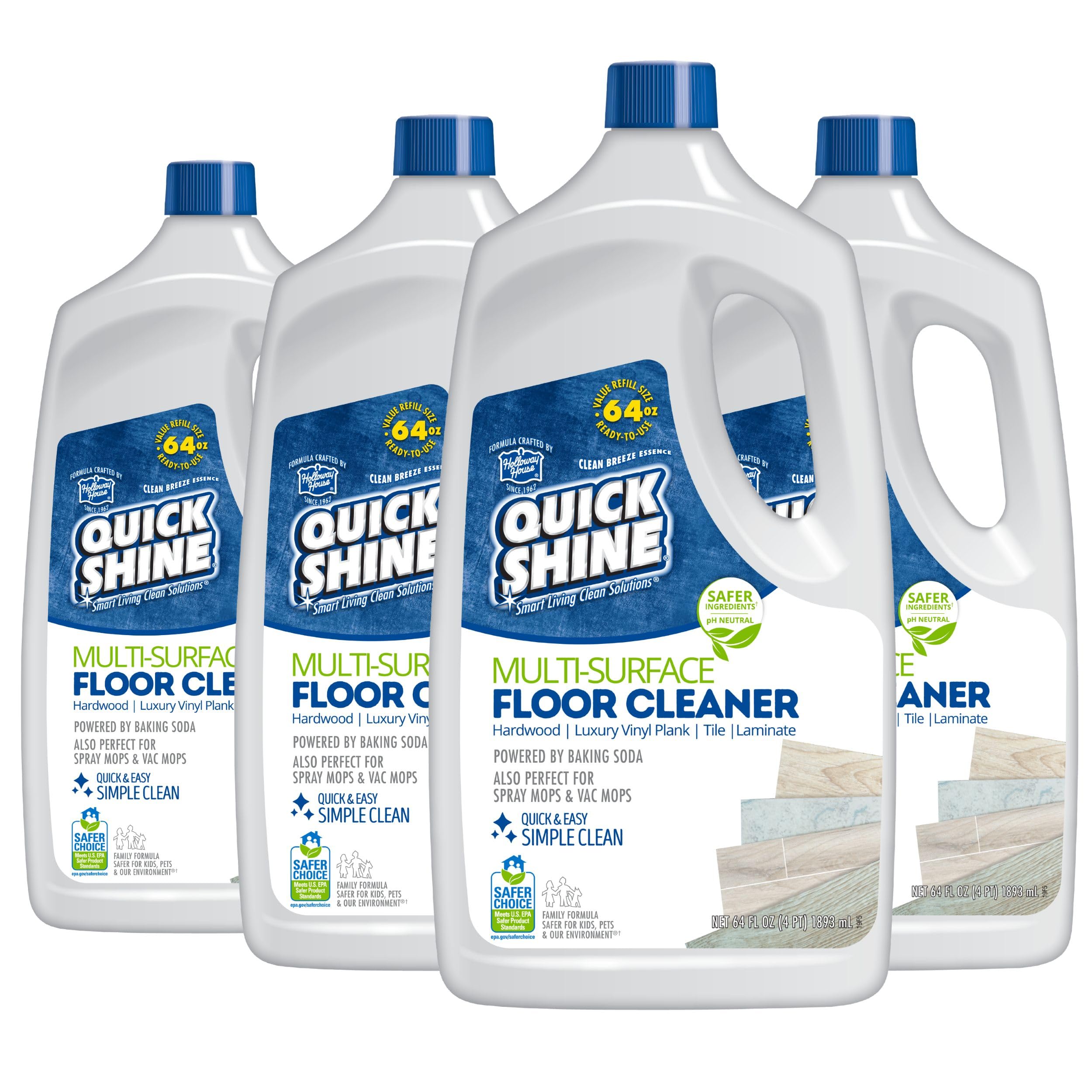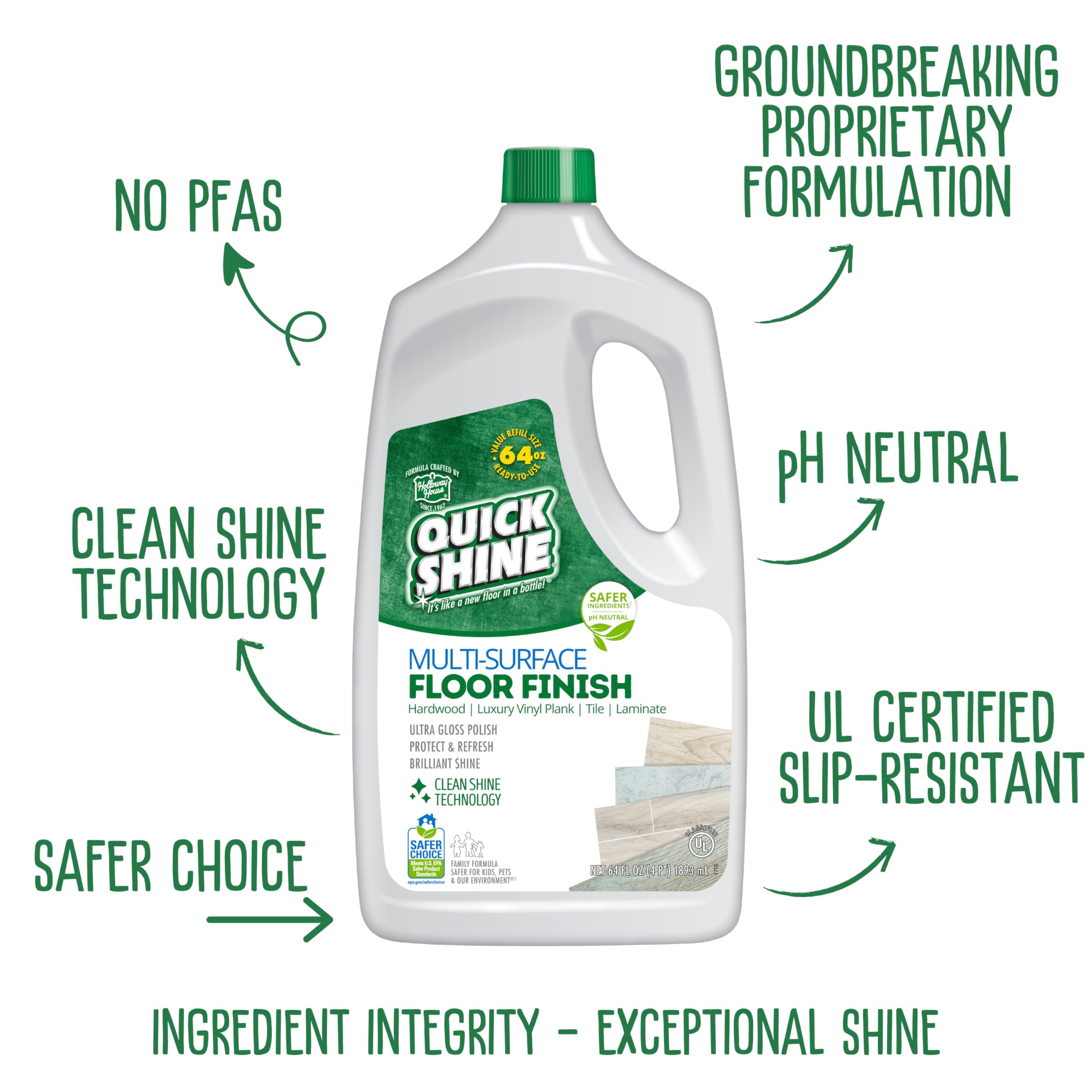 Treat your hardwood, Luxury Vinyl Plank, LVT, laminate, tile, and stone floors with Quick Shine Multi-Surface Floor Finish. Hard floor surfaces are often throughout the entire home. Targeted care for these surfaces can return a deep, rich gloss without harming their finish. Reclaim that new floor look without sanding, finishing or investing countless hours. Restore shine with our protective, ultra-gloss, scratch resistant finish! Quick Shine Multi-Surface Floor Finish, 64oz-4PK, in the convenient refill size, shines and protects hard surface floors with a pH neutral, toxic free formula for a streak-free, haze-free shine.