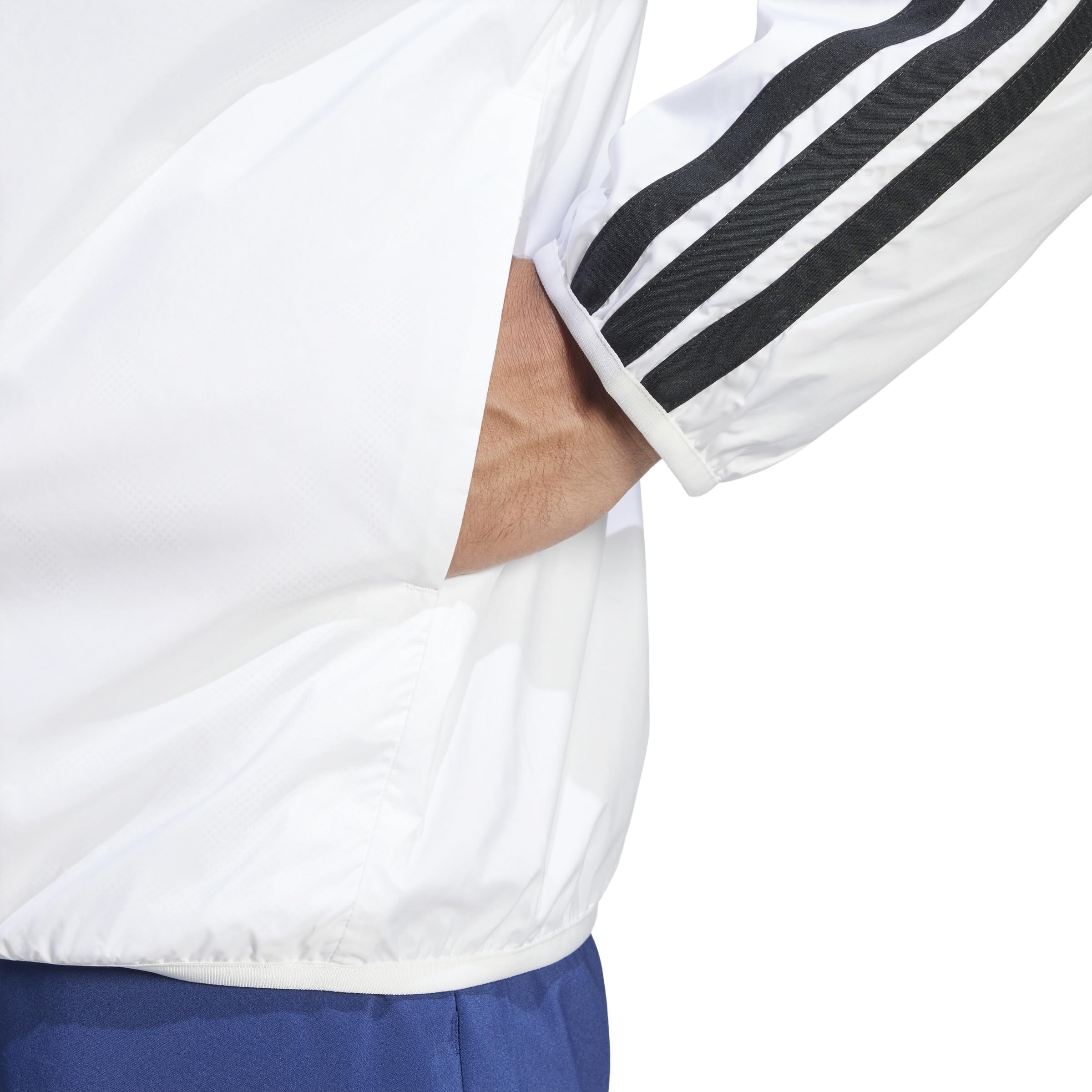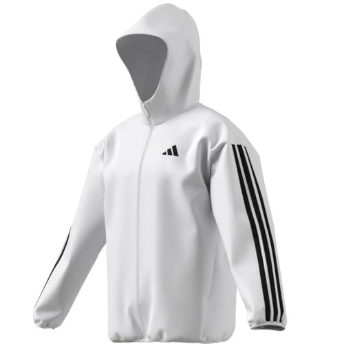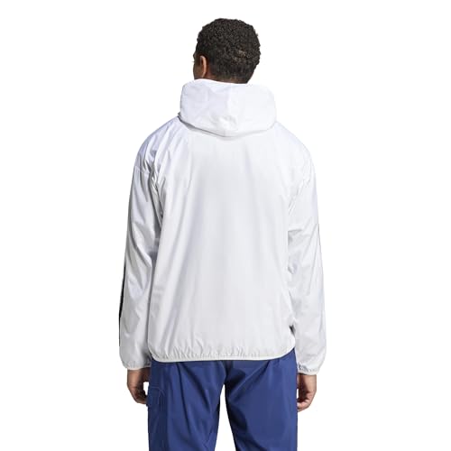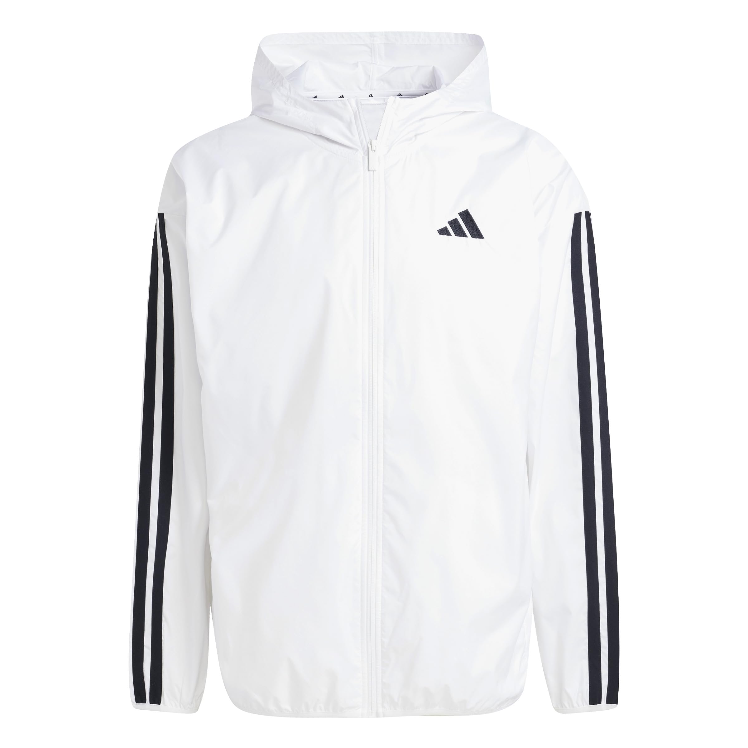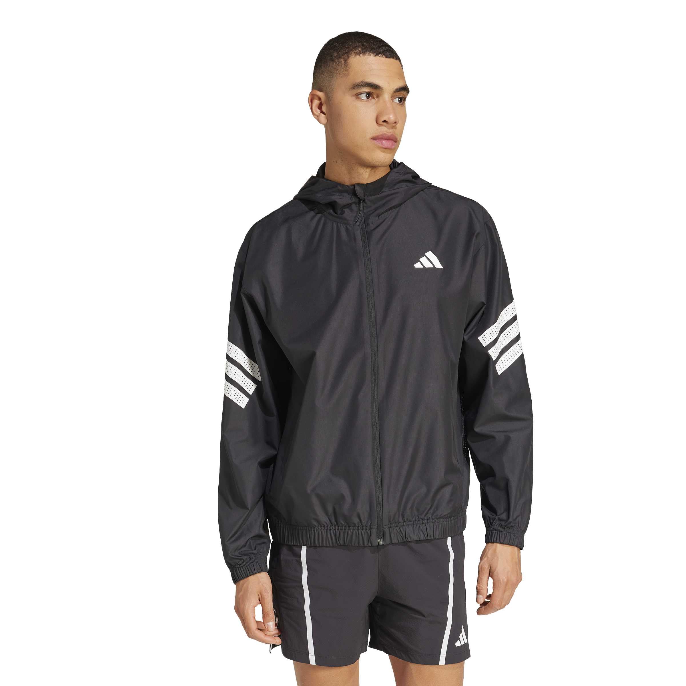 Description Gusty morning jog? Dinner at a windy outdoor beer garden? Don't sweat it. This men's adidas windbreaker handles it all thanks to its wind-resistant fabric, full zip and drawcord-adjustable hood. Side pockets hold your stuff.