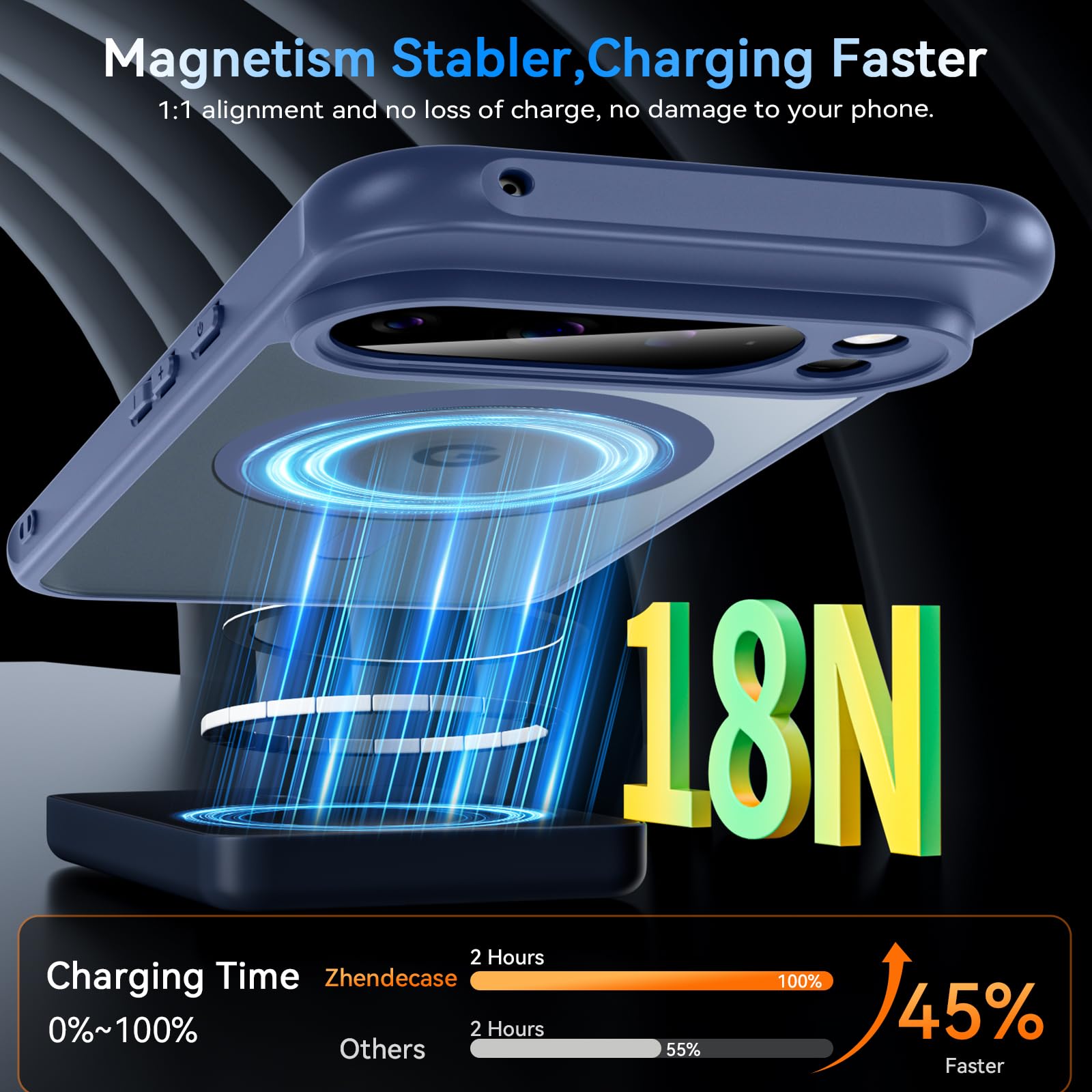 Zhendecase is compatible with Pixel 10 Pro XL and features strong magnetic closure. Military-grade drop-resistant, skin-feeling material resists yellowing. Precisely sized holes for a lightweight, minimalist look, and a matte black finish for a refined look.