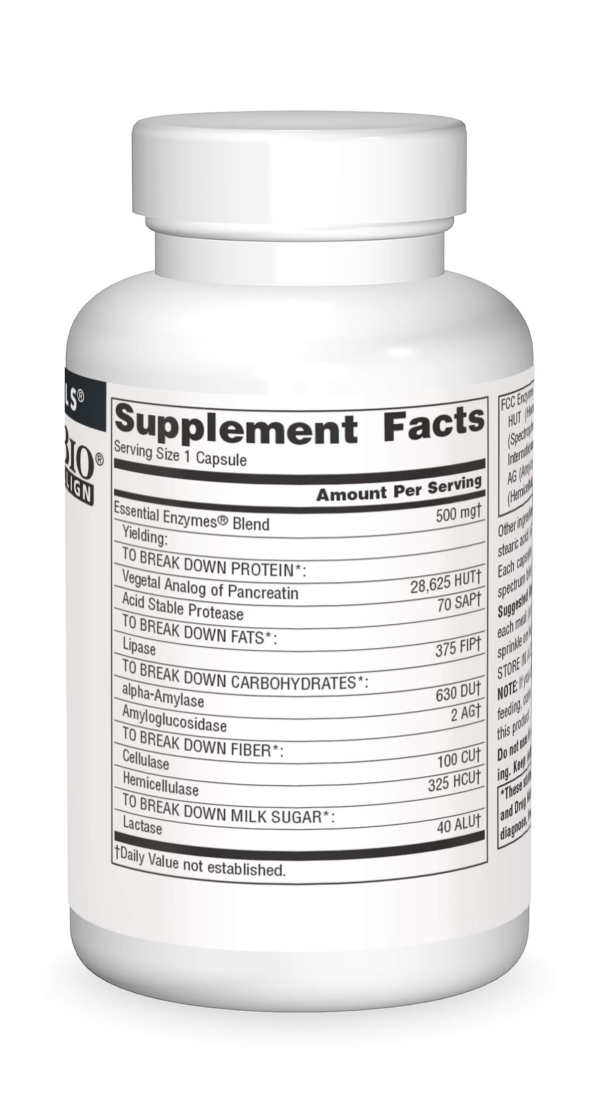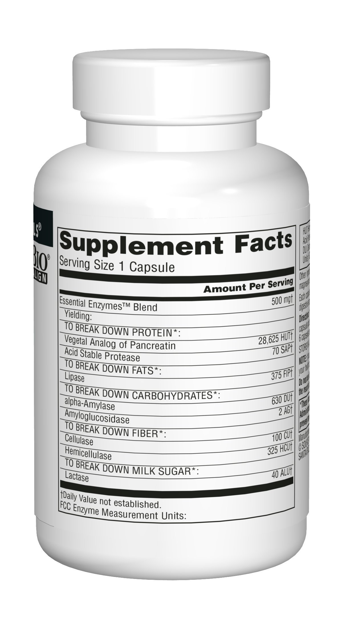 ESSENTIAL ENZYMES BENEFITS. Expertly formulated compilation of digestive enzymes that break down multiple food groups: carbohydrates, protein, fat and fiber.