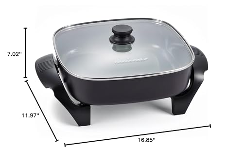 Expand your kitchen without remodeling & add versatility and convenience to your countertop with the Elite Gourmet 3” deep electric skillet, one of the most practical kitchen appliances you can own. From one-dish meals to seared meats and a dozen eggs at once, it’s perfect for feeding large families with ease. PFAS-Free, safe & durable, featuring our exclusive Ceralast™ Ceramic Non-Stick Coating, this skillet is designed for safe cooking, serving, and easy cleanup. Enjoy delicious, hearty meals without worrying about chemicals, sticking, or difficult cleaning. Smart design for everyday cooking & built for ease of use and durability, the 3” Deep Skillet includes a removable, variable temperature control (200°F to 450°F), a power indicator light, and extra-tall 3” walls to reduce splatter. The tempered glass lid locks in moisture while you monitor the progress of cooking your food, and cool-touch handles and knob ensure safe handling. It is efficient & cost-effective to cook family-sized meals without heating up your entire kitchen. Whether you’re making breakfast, lunch, or dinner, this electric skillet is a space-saving, energy-efficient alternative to turning on your oven or stovetop. Reliable performance powered by 1200 watts and ETL certified for safety, the Elite Gourmet Electric Skillet is backed by a 1-Year Limited Warranty. Expand your kitchen’s cooking capacity with this durable, deep, and dependable essential.
