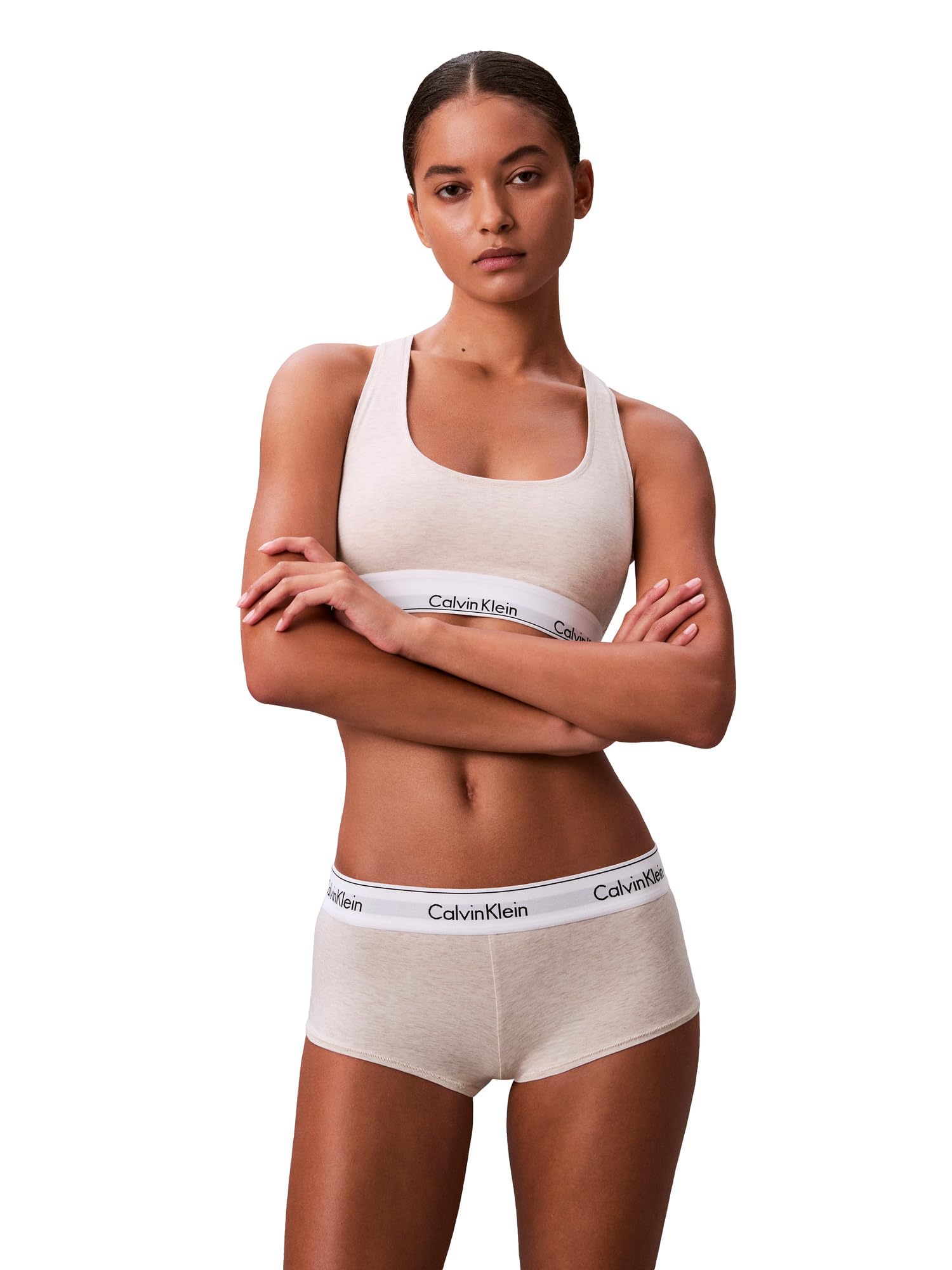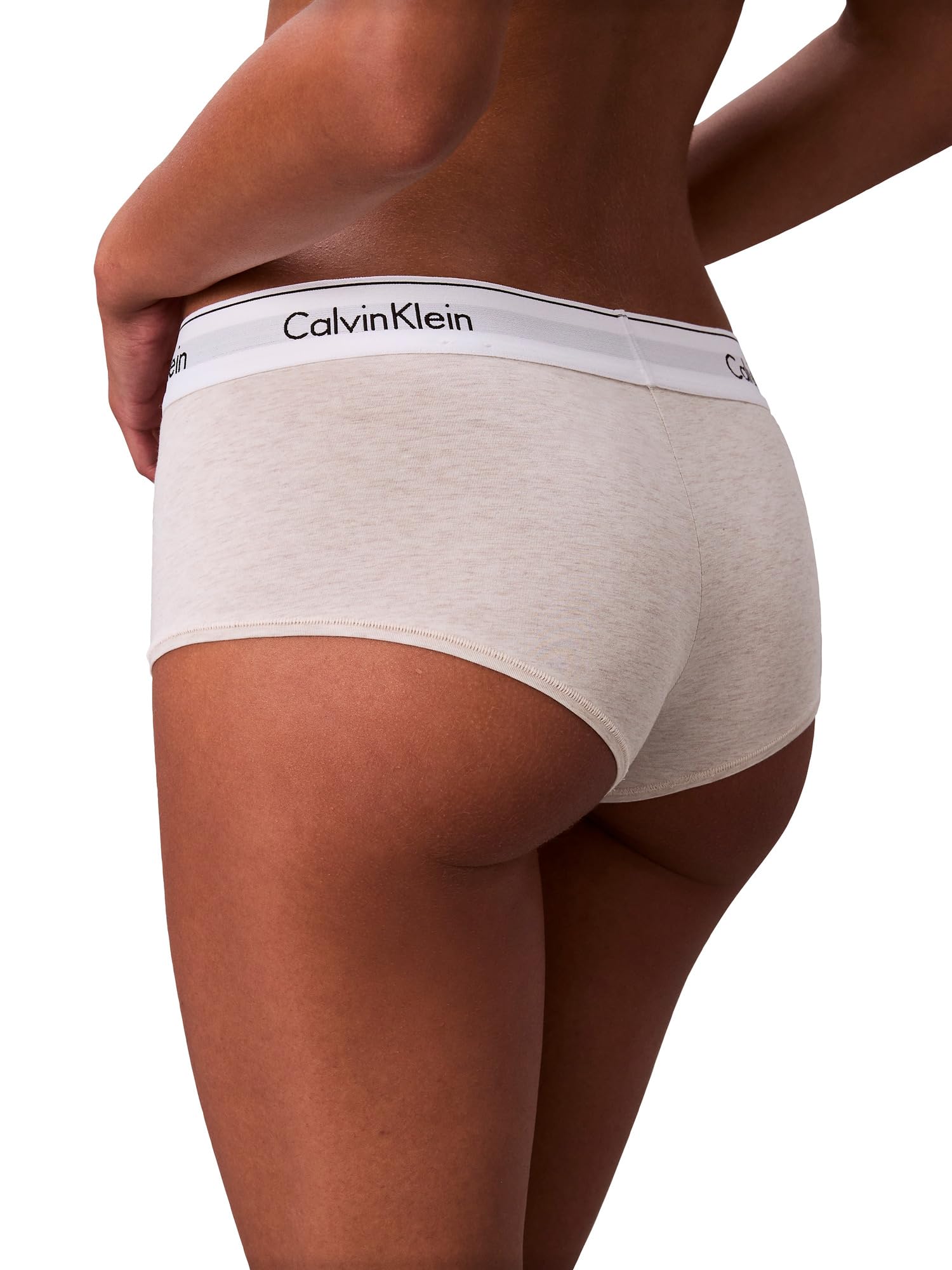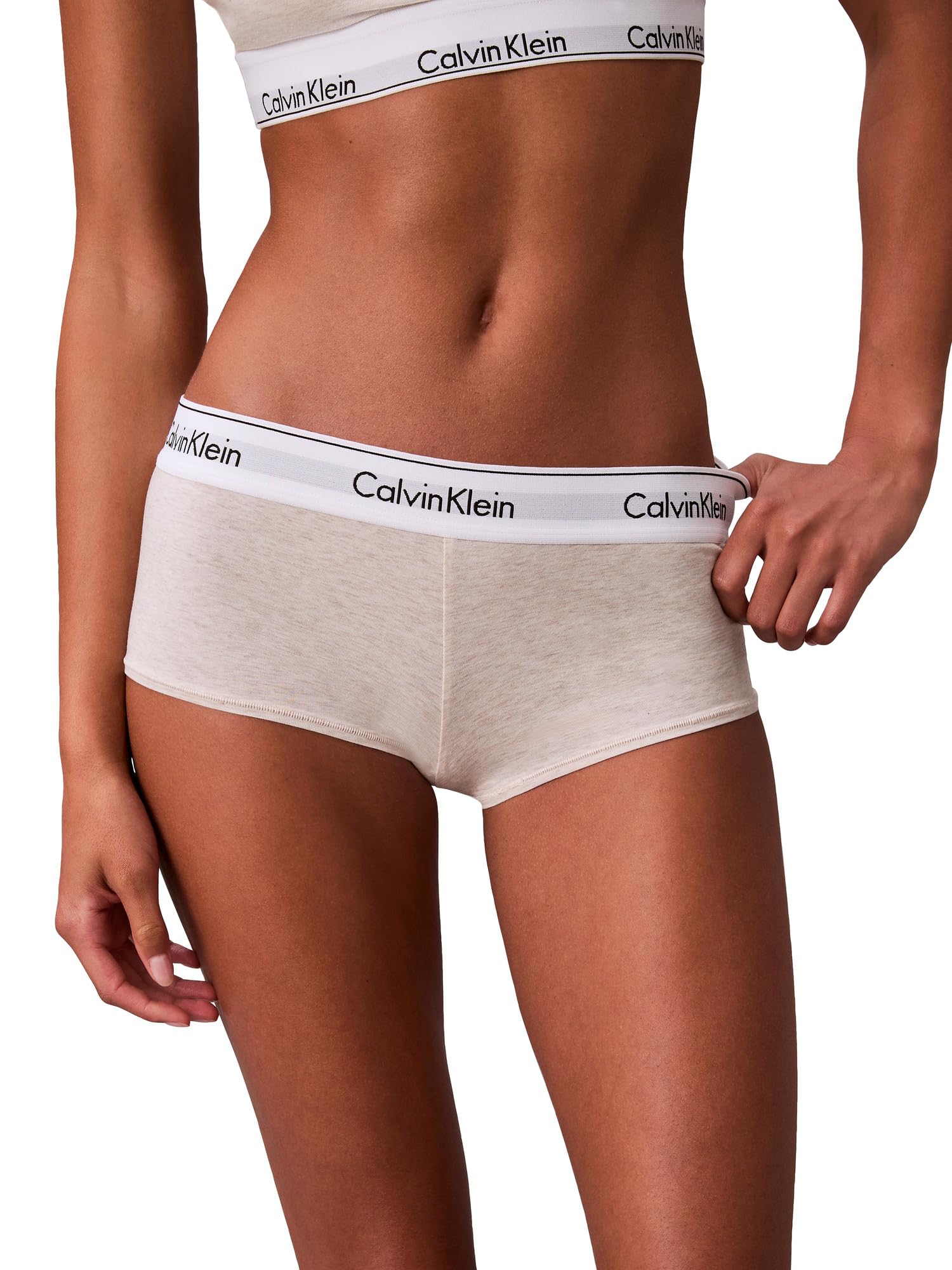 Description Stylish cotton boyshort underwear featuring a modern design and repeating Calvin Klein logo waistband.