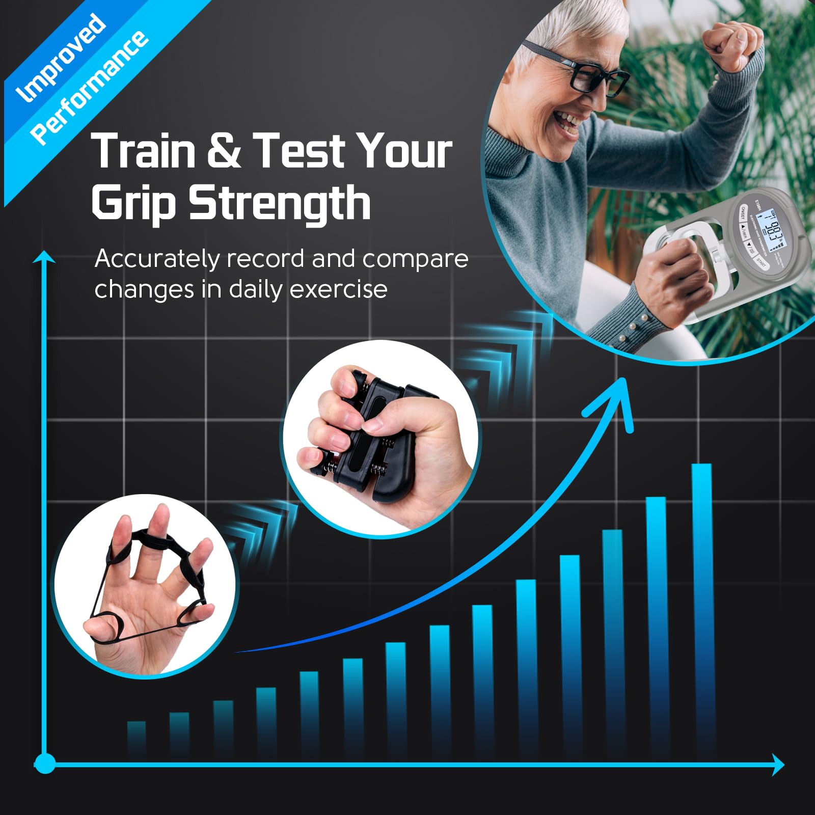 𝐒𝐭𝐫𝐞𝐧𝐠𝐭𝐡 𝐓𝐫𝐚𝐢𝐧𝐢𝐧𝐠 𝐀𝐜𝐜𝐞𝐬𝐬𝐨𝐫𝐢𝐞𝐬: Our grip strength tester includes a spring hand gripper and finger stretcher to enhance grip strength and finger flexibility. Use a grip tester to show your progress