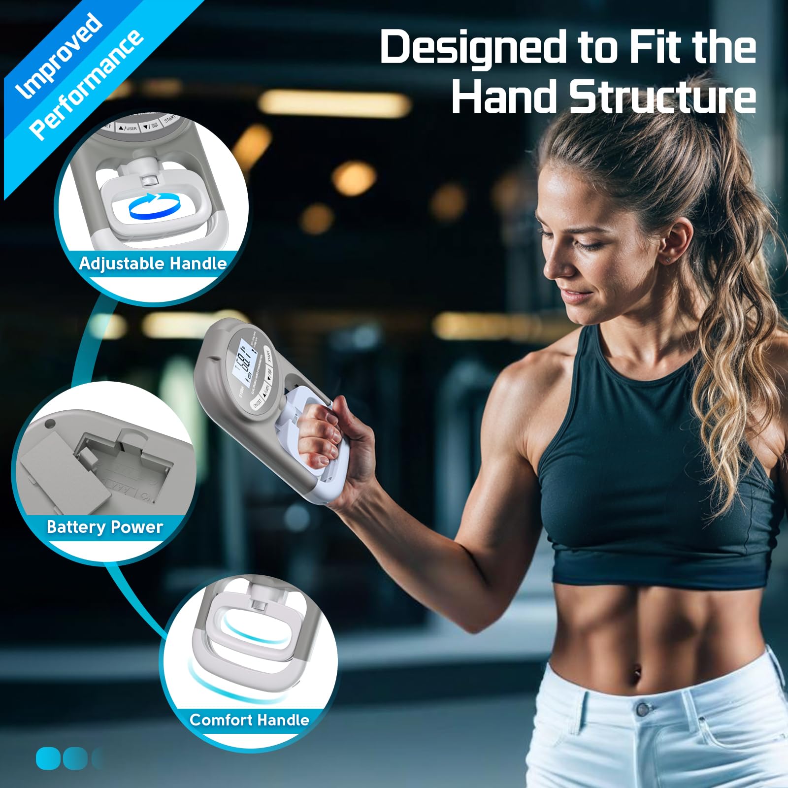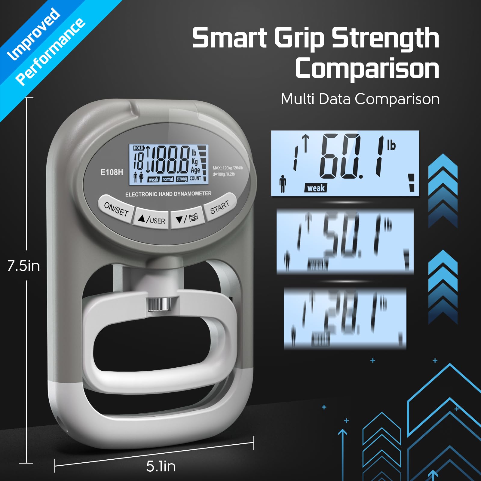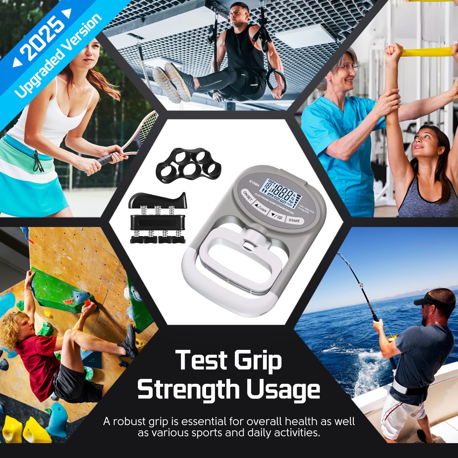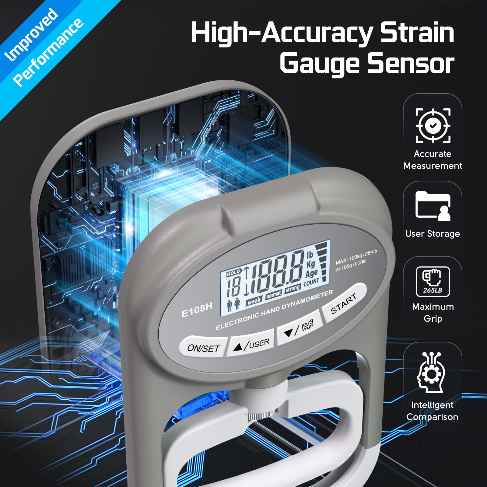𝐆𝐫𝐢𝐩 𝐒𝐭𝐫𝐞𝐧𝐠𝐭𝐡 𝐓𝐫𝐚𝐢𝐧𝐞𝐫 𝐌𝐞𝐚𝐬𝐮𝐫𝐞𝐦𝐞𝐧𝐭: Grip strength tester measuring up to 265 lbs (120 kg) in 0.2 lbs (0.1 kg) increments. The grip trainer offers real-time readings that help you monitor your strength gains effectively