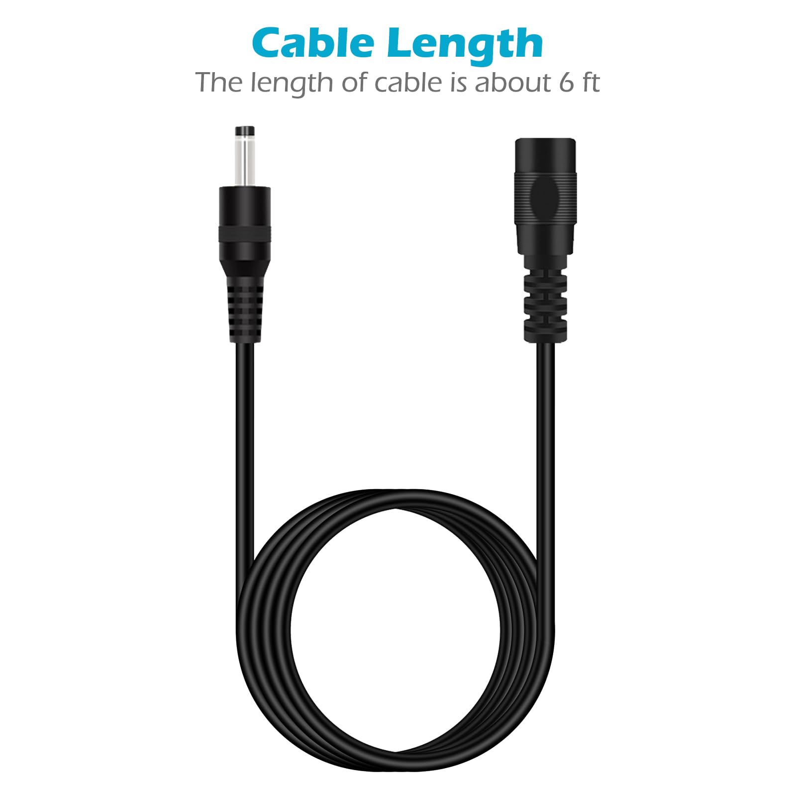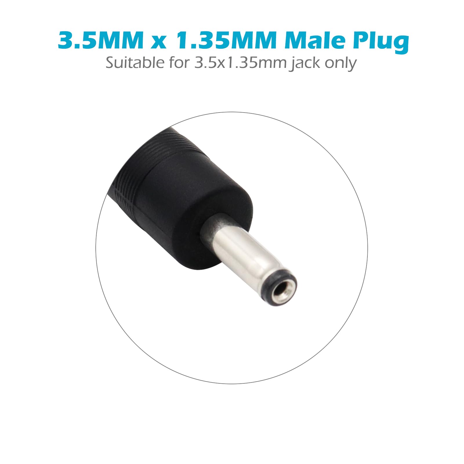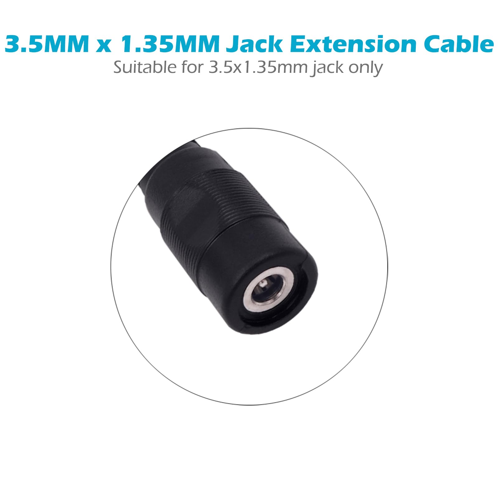 The 3.5mm x 1.35mm DC power extension cord is made of premium pure copper material, lower resistivity and high electrical conductivity.