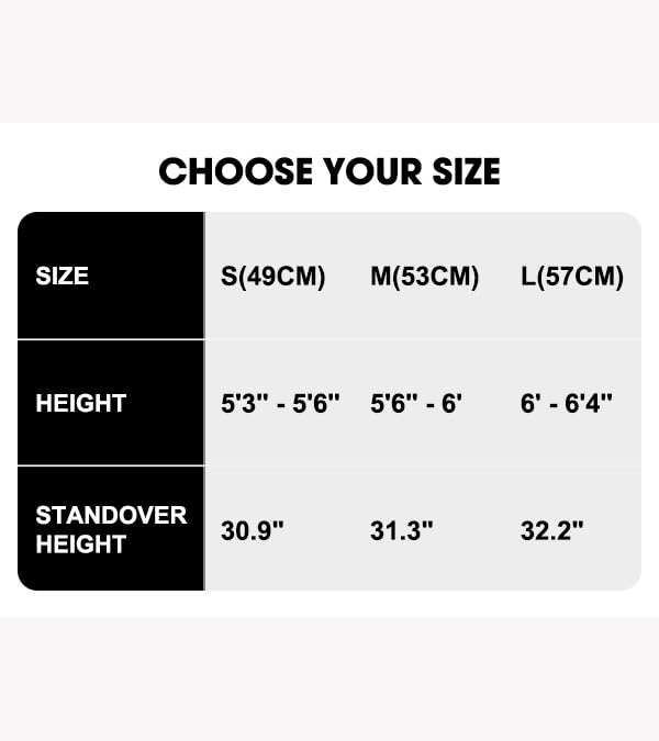 Size Guide: Size S (49 cm) for women and men between 5'3" to 5'6", Size M (53 cm) for rider between 5'6" & 6', Size L (57 cm) for adult between 6'to 6'4"; 90% pre-assembled and easy to assemble; The delivery box include free installation tools and pedals