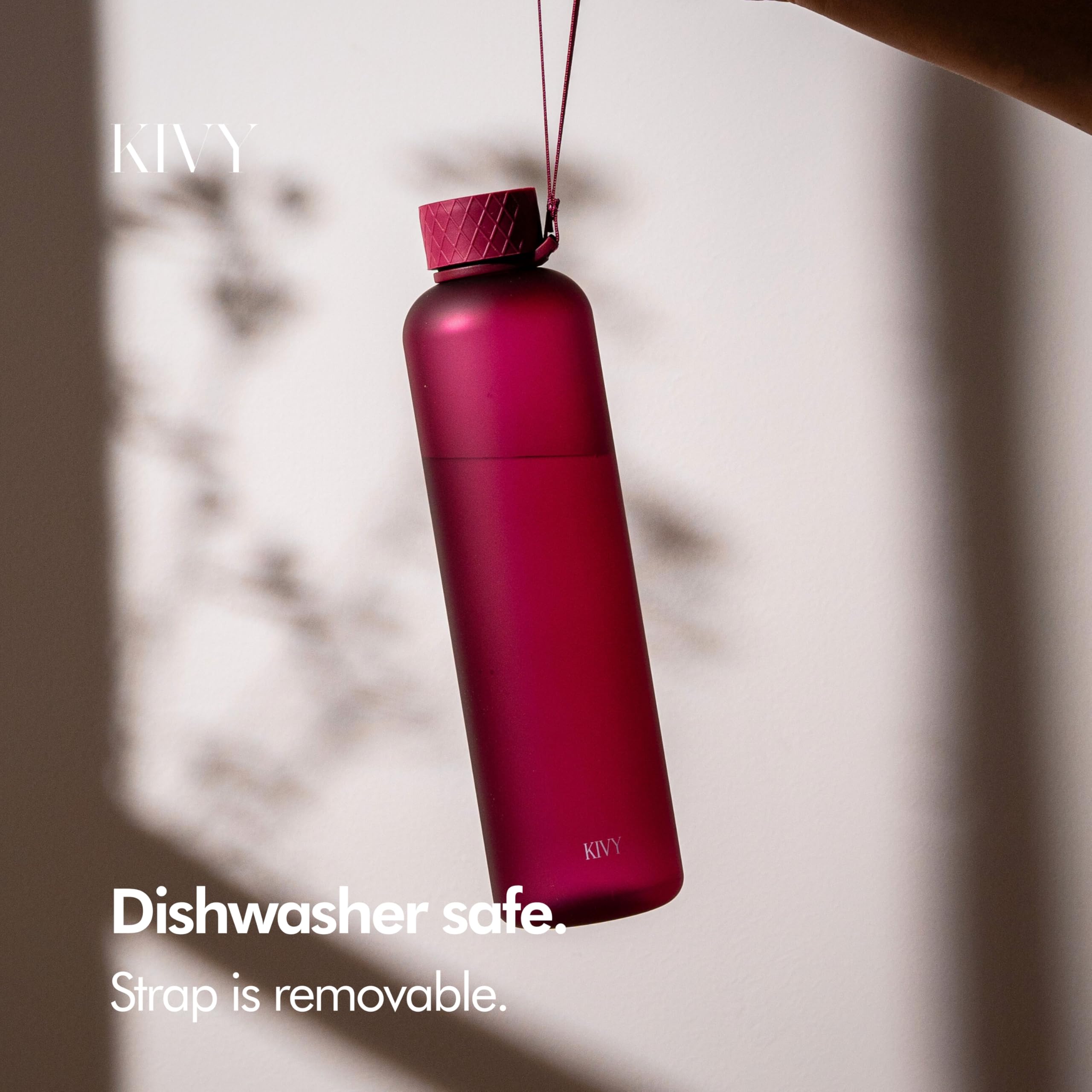 DISHWASHER SAFE: The 32 oz water bottle with screw top is dishwasher safe, and the lid + strap are easy to clean by hand. The aesthetic water bottle is completely BPA-free and non toxic.