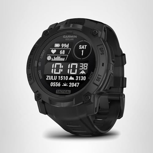 Dare for more with Instinct® 3 – Tactical Edition, the rugged GPS smartwatch with solar charging for unlimited battery life in smartwatch mode (assumes all-day wear with 3 hours per day outside in 50,000 lux conditions) and a built-in flashlight. With a bolted construction, metal-reinforced bezel and scratch-resistant lens, it can take on the toughest missions. It’s engineered to MIL-STD-810 standards for thermal and shock resistance and is also 10 ATM water-rated. Purpose-built tactical features include a rucking activity, stealth mode, kill switch and preloaded Applied Ballistics® solver (requires one-time purchase via the AB Quantum mobile app). Stay on track with a built-in 3-axis compass and barometric altimeter as well as multi-band GPS with SatIQ™ technology, which delivers superior positioning while also optimizing battery life. Its 24/7 health and wellness features keep you connected to your body with heart rate tracking, advanced sleep monitoring, Pulse Ox and more (this is not a medical device, and data presented is intended to be a close estimation of metrics tracked; Pulse Ox not available in all countries).