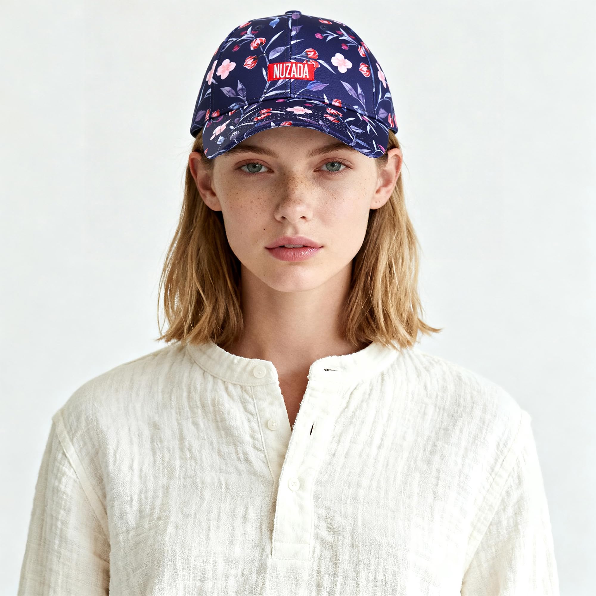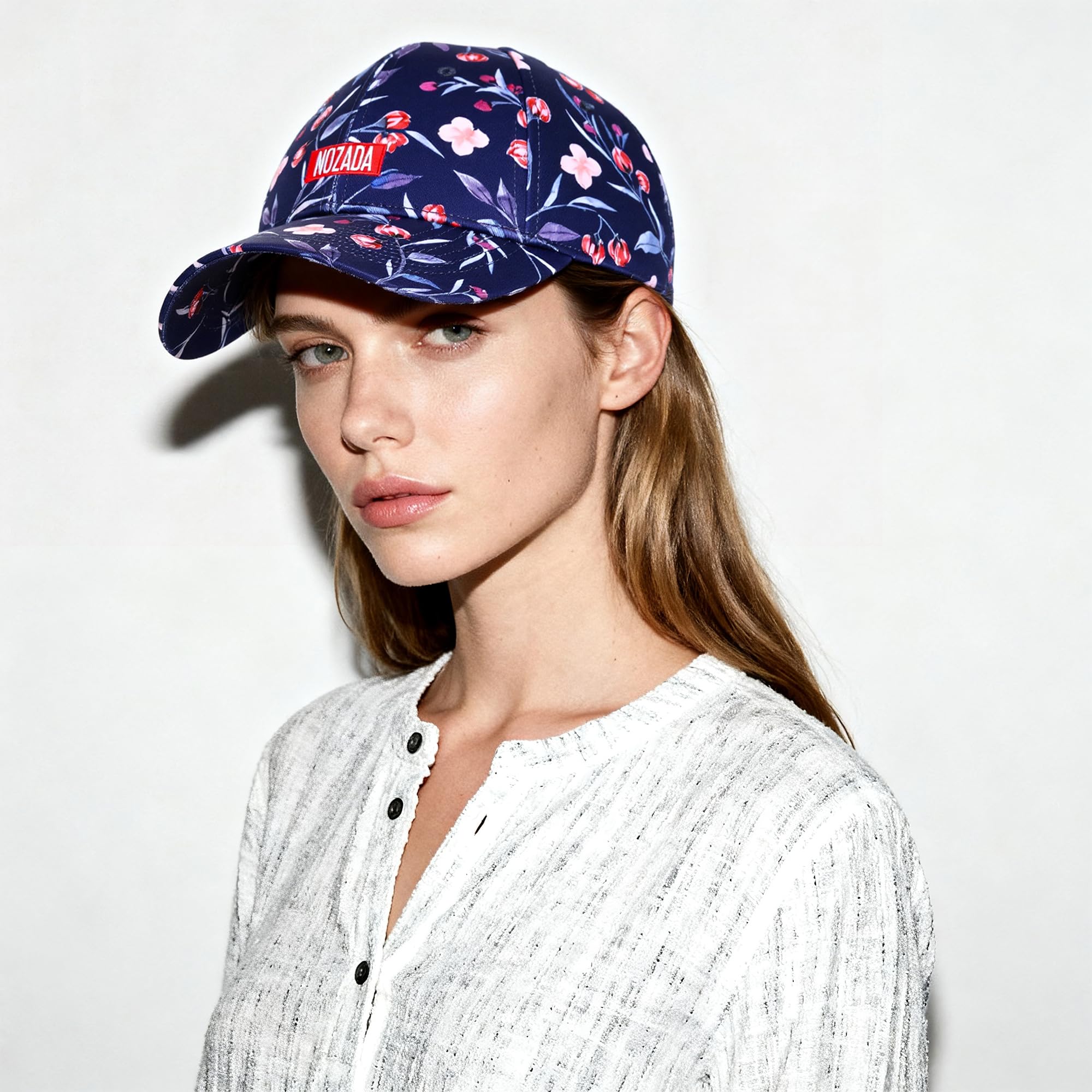 FEATURES: the outer material of women baseball cap is polyester (printed), the part that touches the skin is cotton, the rigid fabric on the front of the baseball cap holds the baseball hats for women's shape in place
