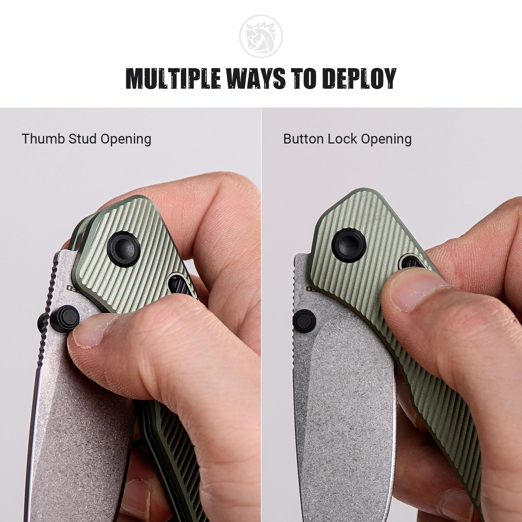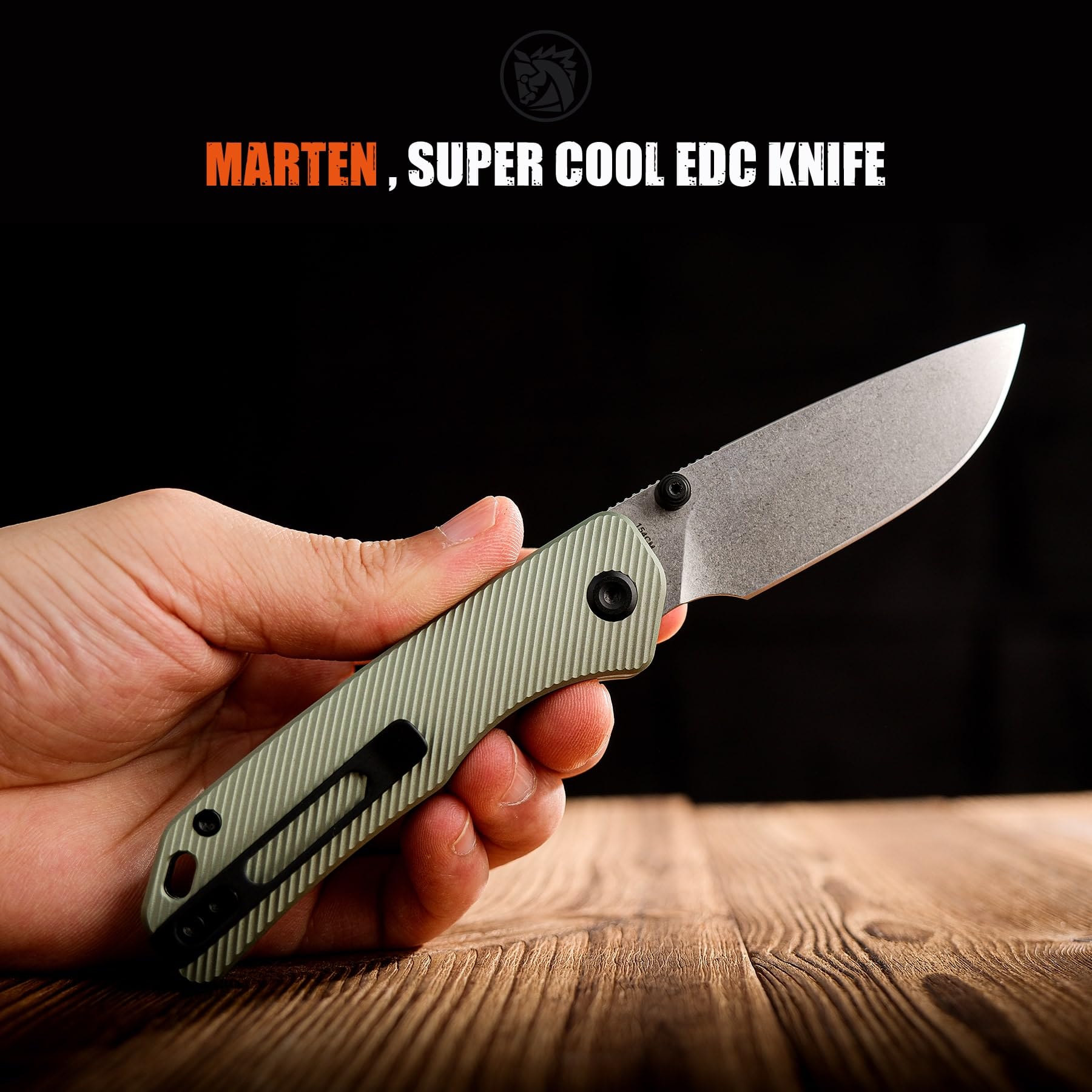 【Reliable and Convenient】 The Marten utilized a Top Liner Lock, combining the best of both compression-based liner lock and button lock. It’s a perfect match of reliability and convenience. Additionally, the button lock is adorned with micro-milled grooves that match the handle pattern, providing added traction for safe, easy operations.