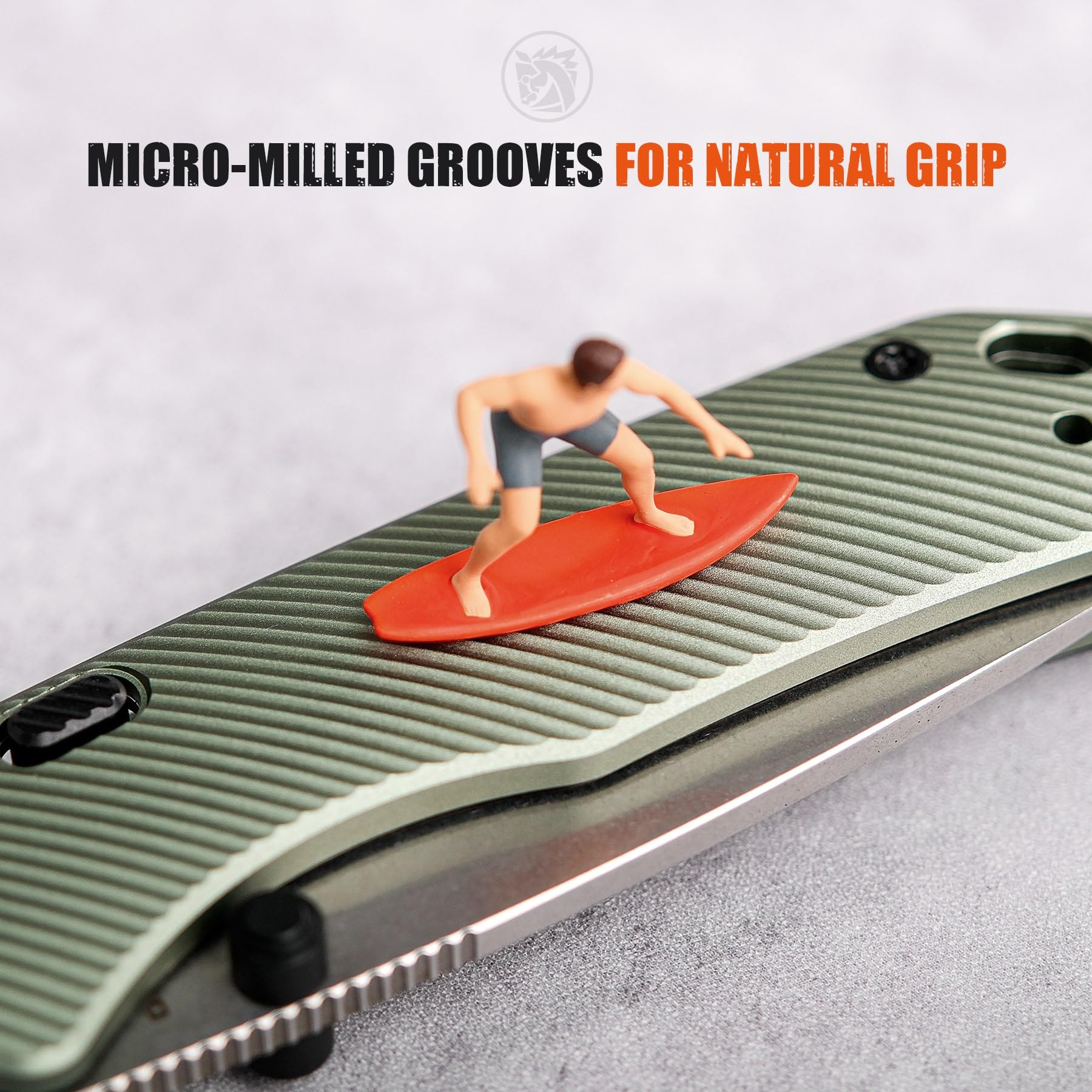 【Painstakingly Made】 Designed for use in multiple environments and conditions, the Vosteed Marten features a contoured ergonomic handle with micro-milled grooves for a confident and controlled natural grip. During the 30-minute CNC micro-milling process, each side of the handle has up to 20 grooves within 1 inch (54 grooves per side). This ensures an ultra-clean surface, and even the tiniest particles, oils, and impurities are removed. Compared to existing models on the market, the Marten has the best-in-class finishes on its aluminum handles, and you will enjoy using it.