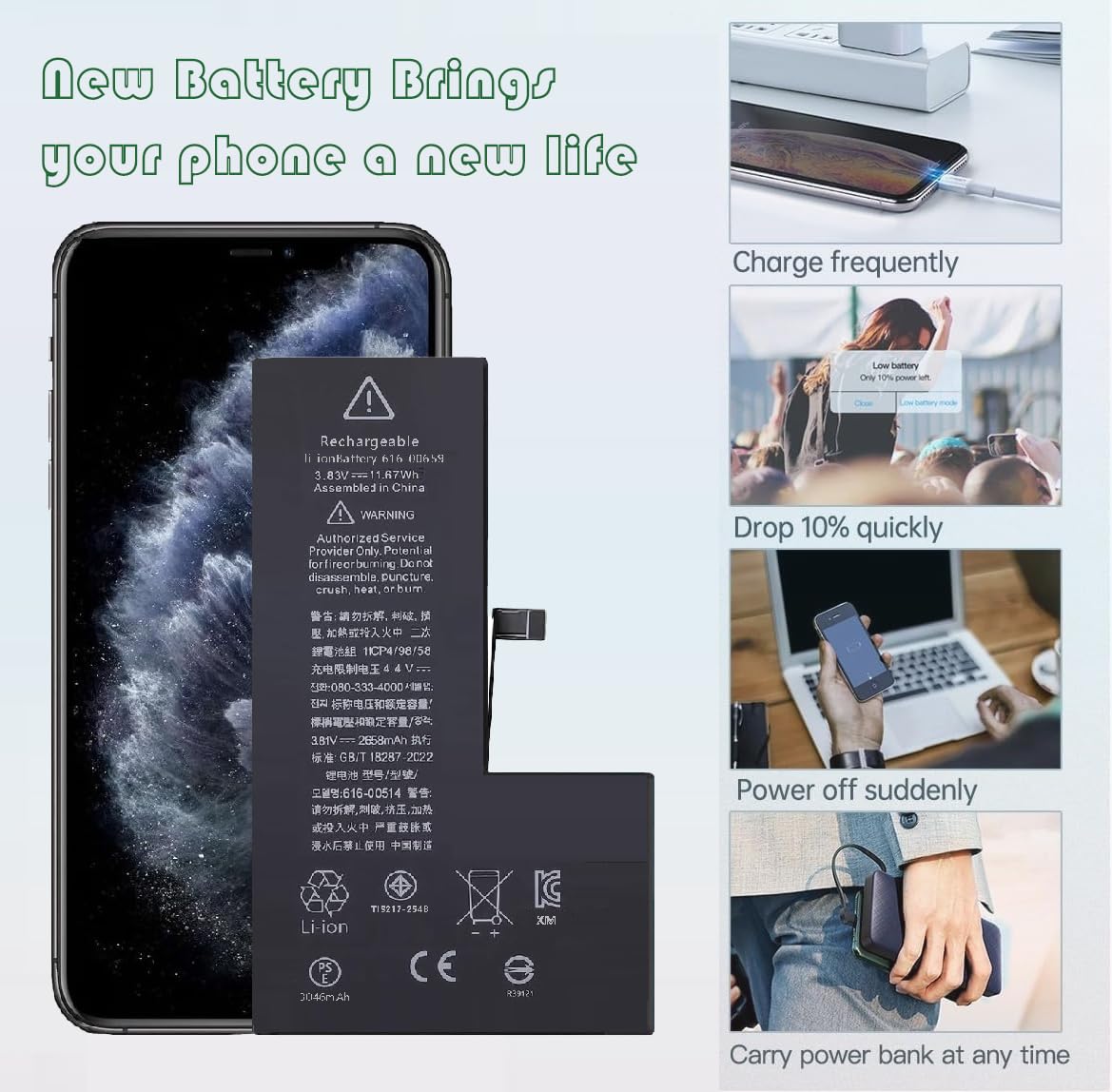 Free Repair Tool: Professional repair tool kit is free with purchase, with the replacement tutorial video on YouTube, easy to complete the battery replacement, no need to spend extra money to find tools.