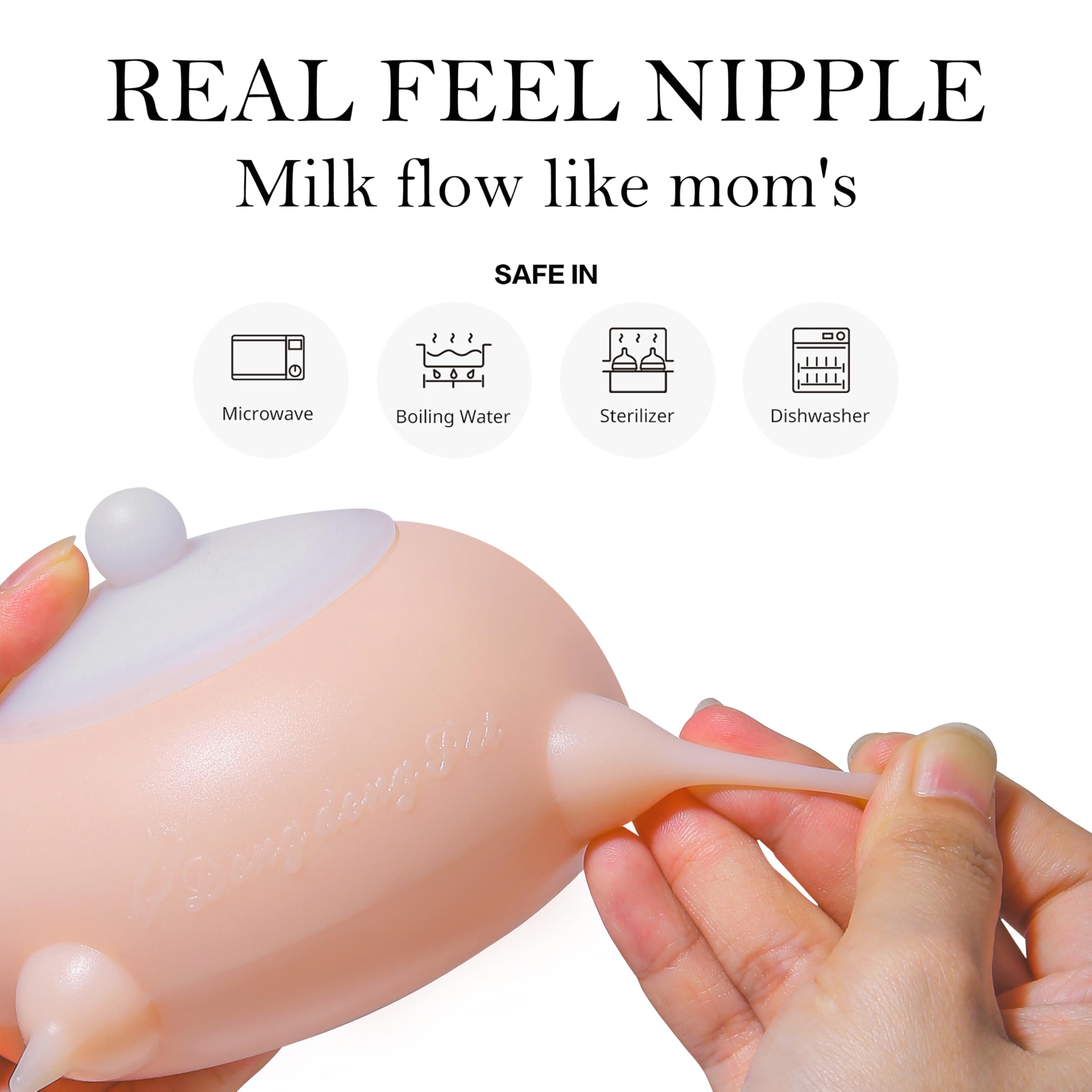 The product must be used under human supervision at all times. Especially when puppies are over 30 days old, it is not recommended to use this product because the nipple is too soft and their sharp teeth have already grown, which may bite off the nipple and pose a risk of ingestion